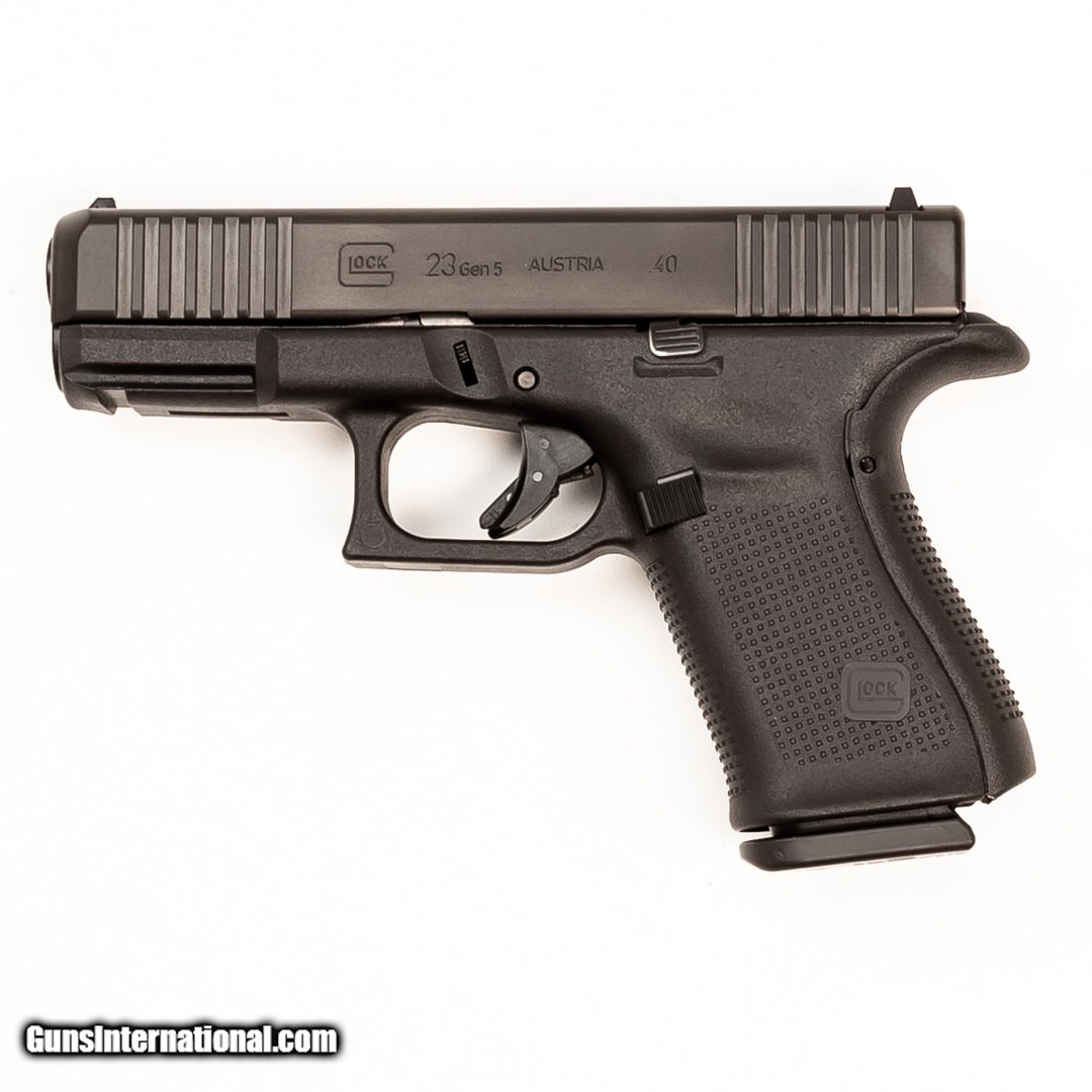 Description: Guns Listing ID: 909256 The Glock 23 Gen 5 is the .40 S&W equivalent of the Glock 19 Gen 5. Designed to be powerful, large enough for duty use, and small enough for concealment, the Glock 23 is an excellent universal sidearm. 3-13 round magazines, the original case, and a manual are included. GLOCK’s compact 40 S&W, now features the latest Gen5 technologies including the nDLC finish, a flared mag-well, enhanced GLOCK Marksman barrel (GMB) for increased accuracy, and an ambidextrous slide stop lever. Get the best bang for your buck when you get a Certified Used Firearm . When you see the Certified Used stamp on any of our firearms, you can be confident that you’re getting exactly what you want – a gun only in very good to excellent condition and held to the highest quality standard. All Certified Used Guns come with a ‘no questions asked’ return policy . PLUS, ALL CERTIFIED USED GUNS SHIP FREE! SOLD Model: G23 gen 5 Caliber Info: .40 S&W Condition: Used - Certified Barrels: not specified |