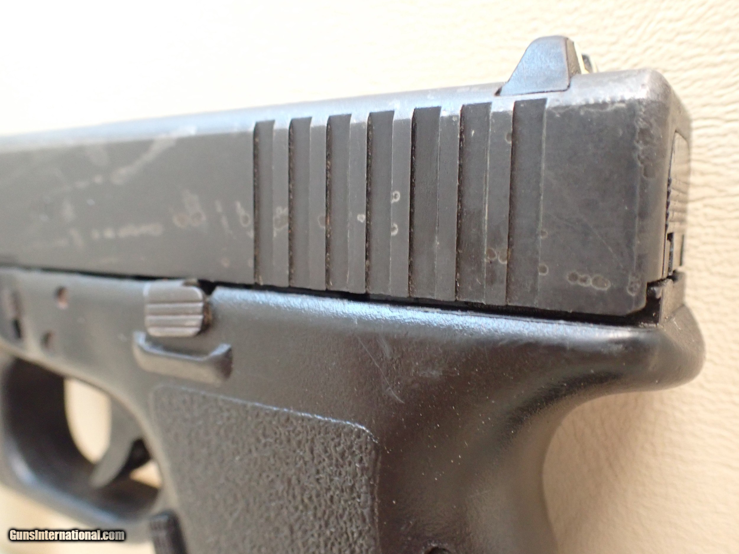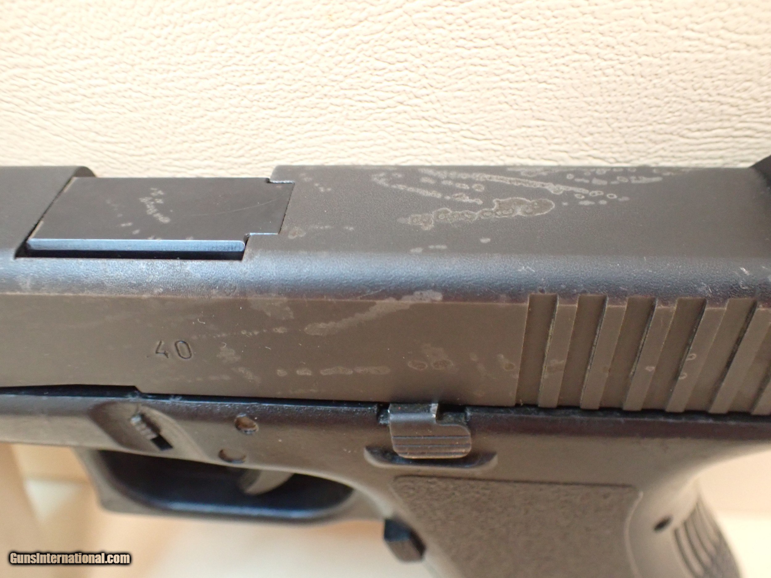 Description: **USED** Glock 23 Gen 2 .40S&W semi-auto pistol is a compact variation of the Glock 22 as a .40 caliber handgun with practical size for recreational and personal use. The Glock 23 features Glock's lightweight polymer frame with checkered grips, standard black finish, a 13 round double stack magazine, and does not have a manual safety. This particular Glock 23 has rust on some exposed metal surfaces like the pins and slide catch lever, with sploches of finish missing on the surface of the slide. Rust on the interior of this pistol is more limited, with only a small amount on the slide rails. The action and slide are smooth with a clean bore and chamber. Please refer to the photos before purchasing! This Glock would be great as a shooter or for personal use. No handgun sale in MA. SOLD Handgun Caliber: .40 Smith & Wesson (.40 Auto, 10 x 21 mm) Manufacturer: Glock Model: 23 Serial Number: RS223US Barrel Length: 4 |