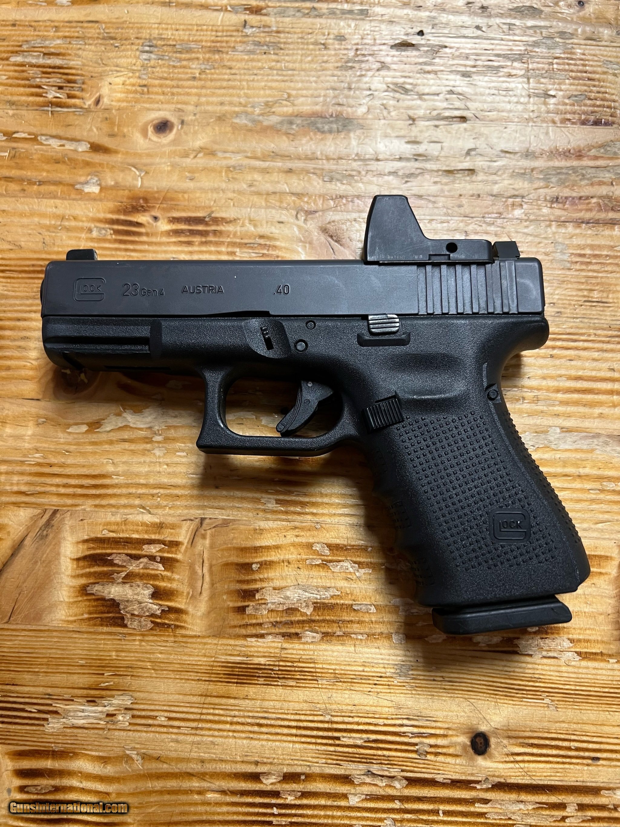 Description: Guns Listing ID: 962491 This firearm is in good condition but has some light scuffs and finish wear from regular use and carry. RMR has some light wear/scraping around the corners but is till very useable. These are department trade ins and include the RMR RMO1, suppressor height night sights, and two mags. No box. SOLD Manufacturer: GLOCK Model: 23 G23 GEN 4 Caliber Info: .40 S&W Condition: Used - Non-Certified Barrels: 4 BARREL Finish: BLACK |