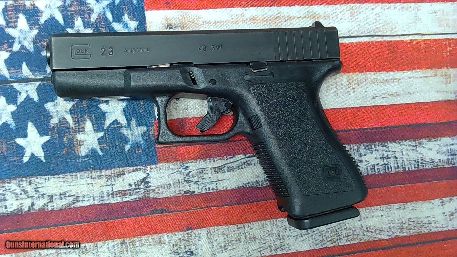 Description: Guns Listing ID: 465167 Pre-owned Glock 23 Gen 2 chambered in .40 s&w. Overall good condition. The slide has light wear, possibly from a holster, the exterior of the barrel has some \"barrel slap\". The bore and feed ramp are clean. This is a good self defense weapon! Includes one 13 round magazine. SN: AGT459US. Manufactured circa 1990, .40 S&W with a 4.01. Semi-auto duty pistol with metal guide rod and 13rd capacity. These photos represent the exact firearm for sale. As with many used firearms, this item may contain scratches and/or signs of wear. This is not always the case but should not be unexpected. No original box or other accessories. SOLD Manufacturer: GLOCK Model: 23 gen 2 Condition: Used - Non-Certified Barrels: 4.01 Gauge Info: .40 S&W Finish: black |