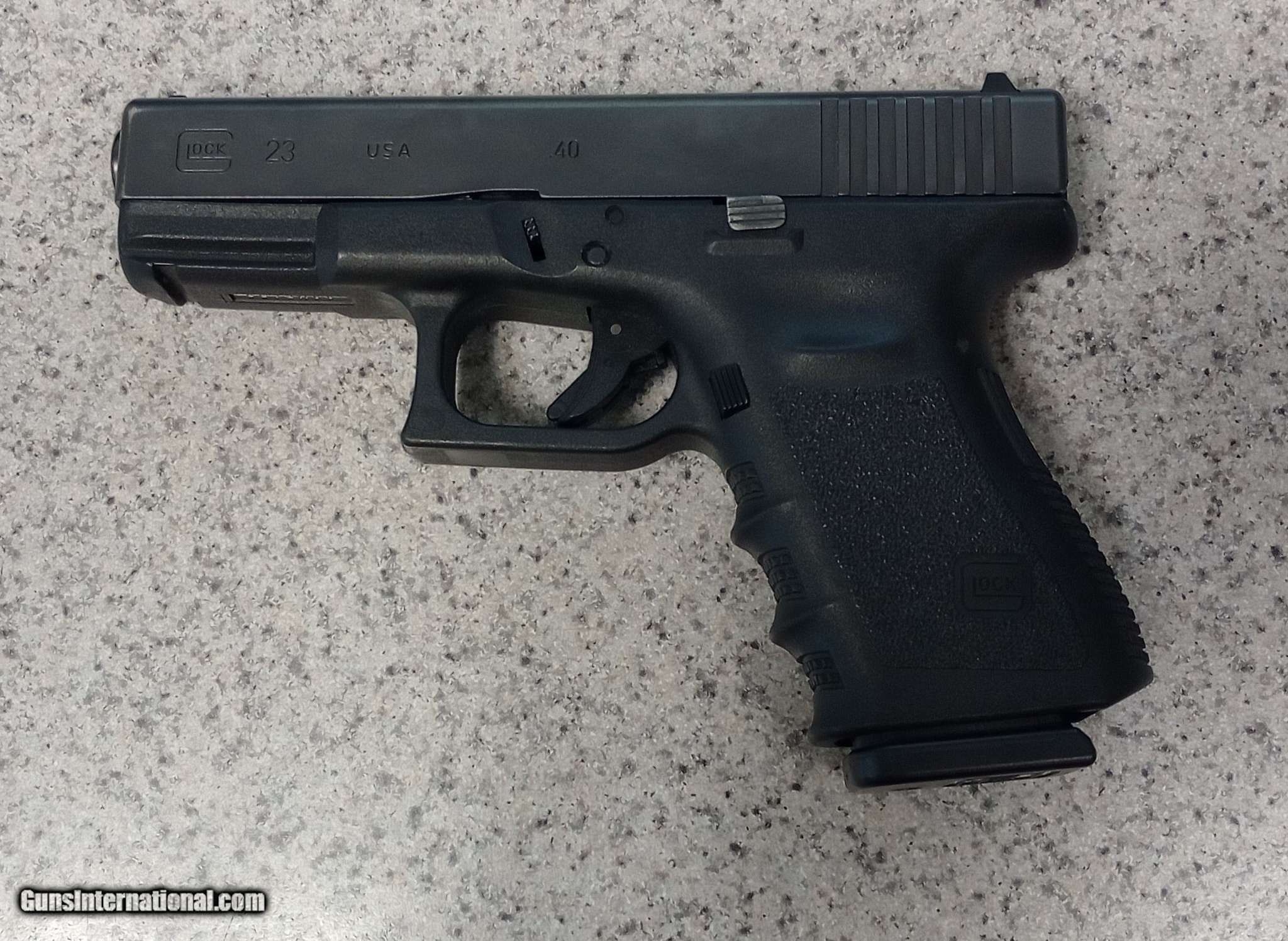 Description: Guns Listing ID: 974100 GLOCK 23, GEN 3, EXCELLENT CONDITION, 2 MAGS SOLD Manufacturer: GLOCK Model: 23 Gen 3 Caliber Info: .40 S&W Condition: Used - Non-Certified Barrels: 4.02 BARREL Finish: BLUED |