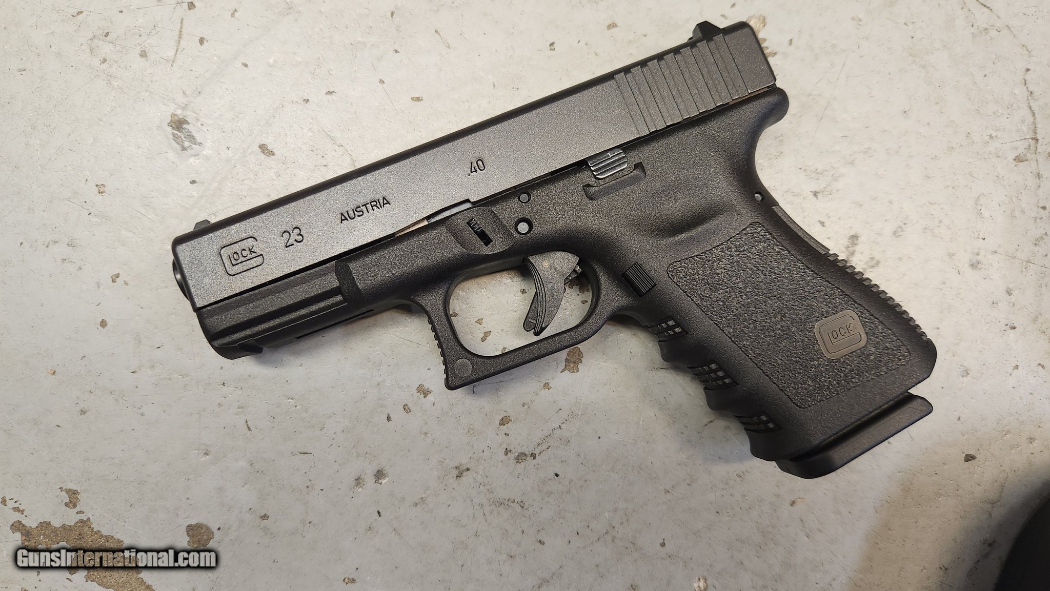 Description: Guns Listing ID: 1317897 Comes with box and two mags. SOLD Manufacturer: GLOCK Model: 23 Gen 3 Caliber Info: .40 S&W Condition: Used - Non-Certified Barrels: 4.02 BARREL Finish: BLACK |