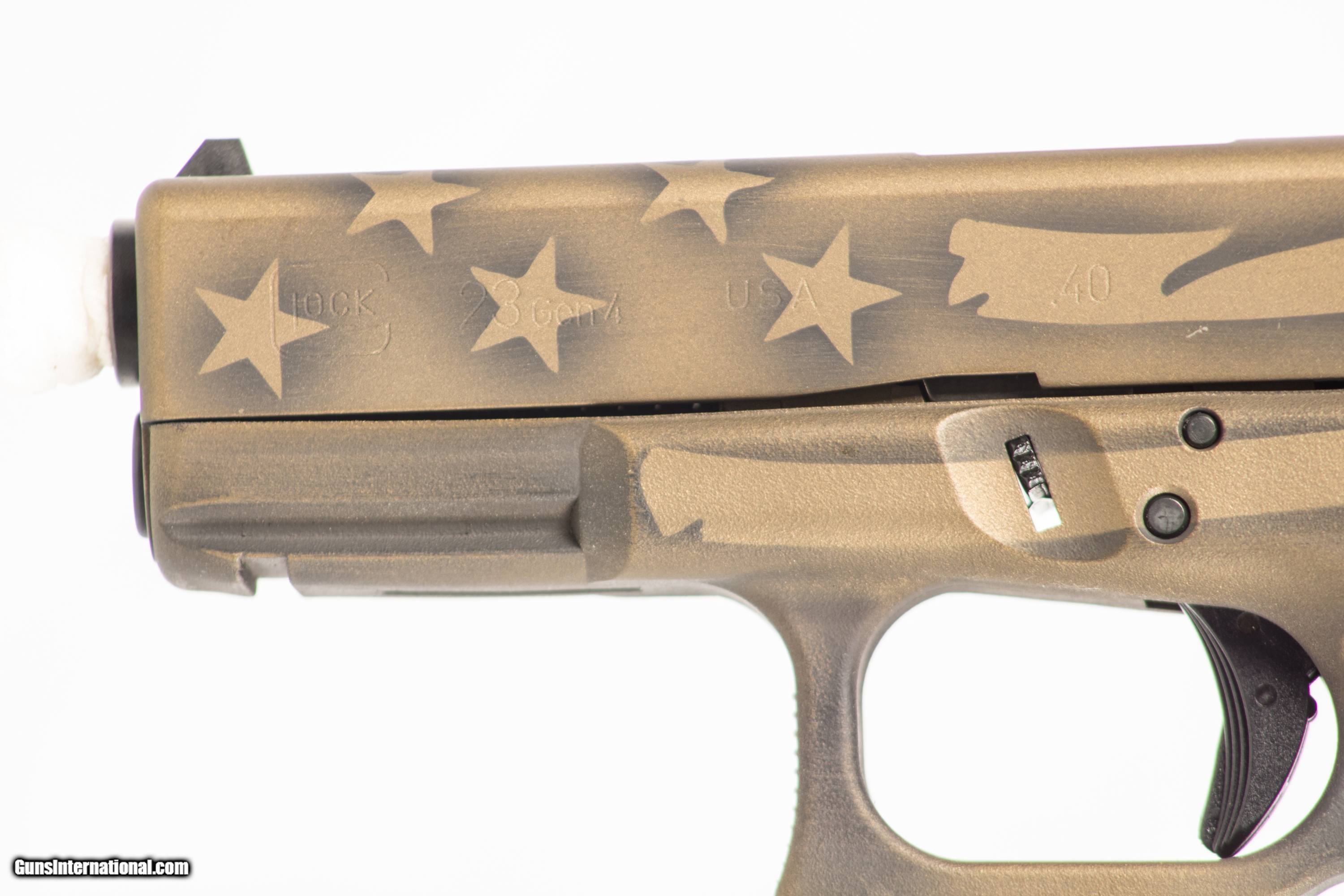 Glock 23 Gen 4 chambered in 40 S&W with a 4 inch barrel bright & shiny bore black & coyote US flag Cerakote finish case and 2 extra magazines. This gun is in excellent condition and is covered by Dury's Lifetime Warranty.