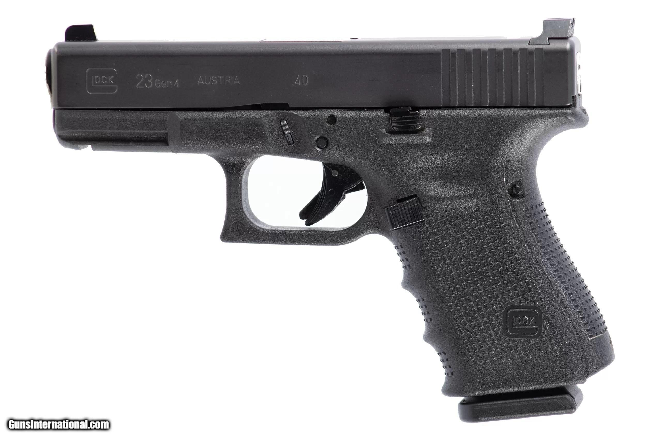 Description: Glock 23 Generation 4 chambered in 40 Smith and Wesson with a 4 inch barrel, mirror-shine bore, immaculate rifling with light rounds fired through. Comes with case, 2 extra mags, and is equipped with AmeriGlo Trooper night sights. The NRA grading condition for this USED firearm is Excellent. Dury's Lifetime Warranty: All firearms purchased from Dury’s Gun Shop, NEW or USED, are covered by a lifetime warranty. We will repair or replace, at our discretion, any firearm purchased from Dury’s Gun Shop, Inc. for as long as it is owned by the purchaser. This warranty is not transferable. WE BUY GUNS! NO COLLECTION TOO BIG OR SMALL FOR OUR GUNS INTERNATIONAL CUSTOMERS ALL OF OUR FIREARMS CAN BE PURCHASED DIRECTLY FROM OUR DURY'S GUNS SITE ! SOLD Manufacturer: Glock Model: 23 GEN 4 Caliber Info: 40 S&W Barrels: 4inches |