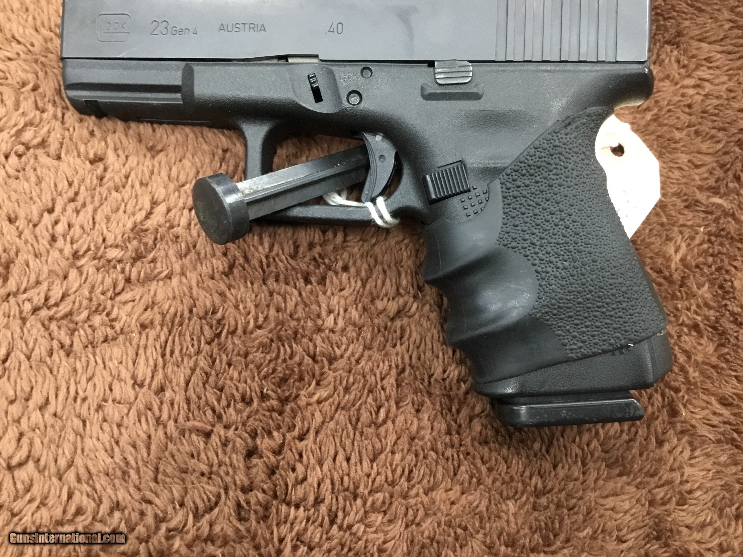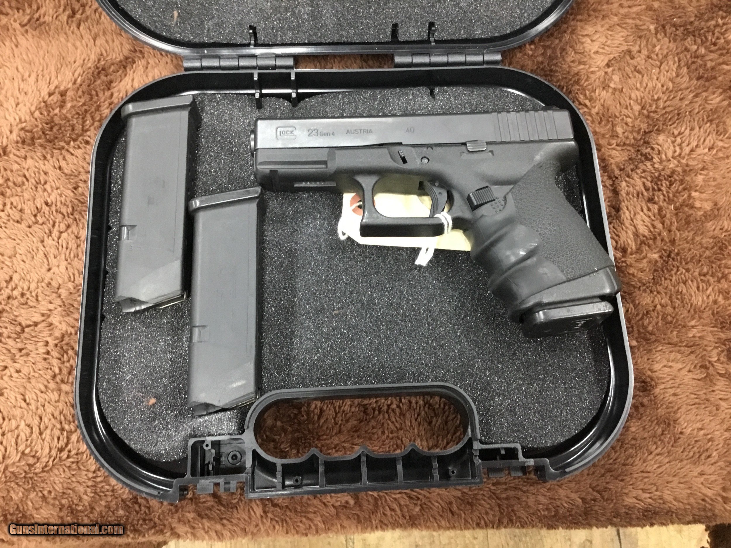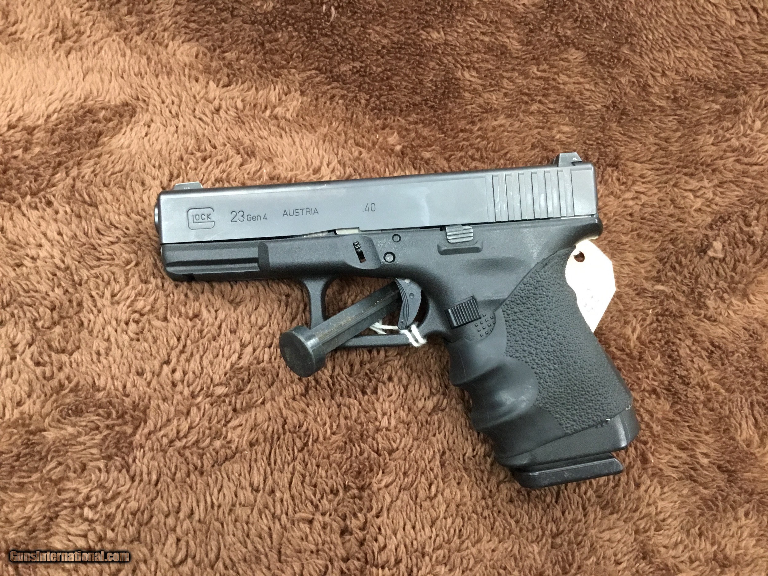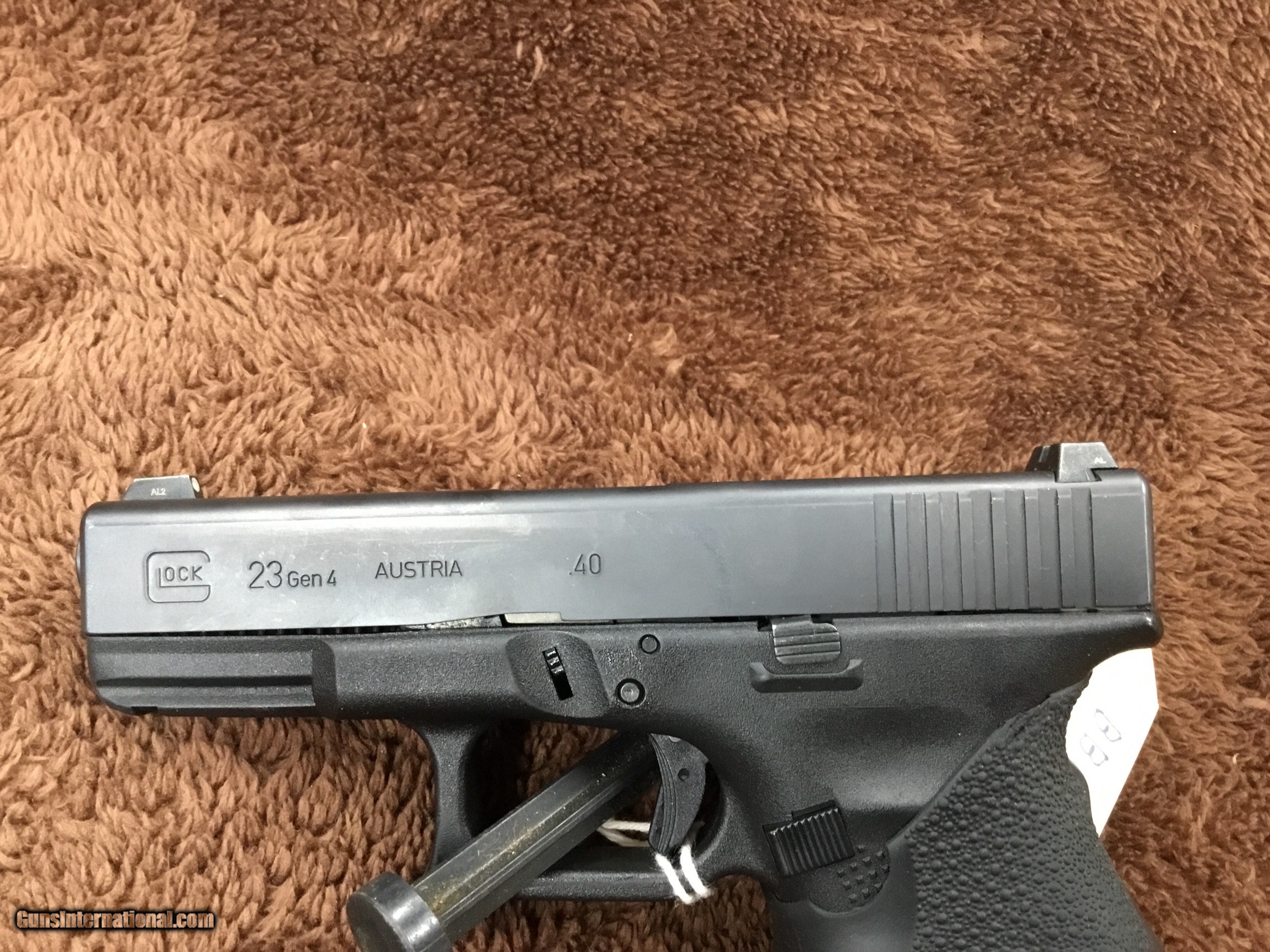 Description: GLOCK 23 GEN 4 WITH IN BOX WITH NITE SITES AND 3 MAGS 13 RDS EACH VERY CLEAN POLICE TRADE IN....CARRIED BUT NOT SHOT MUCH SUPER CLEAN ON INSIDE 30.00 TO SHIP $595.00 FOR THE WEAPON NO sales to California EXCEPT under certain conditions. If you are in California, please DO NOT push buy it now. CALL the shop first. ...... (803) 874-1060. Call shop to pay for internet sales and ask for Ernie or Bree. NO INTERNATIONAL SALES. SOLD |