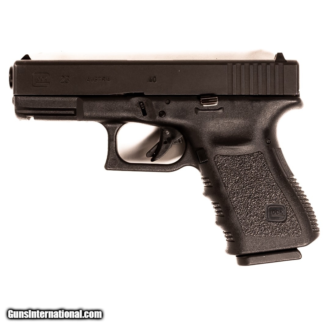 Description: Guns Listing ID: 674259 The Glock 23 is a polymer-framed pistol that offers unparalleled durability and reliability, even in adverse conditions. Crafted with a design that remains relatively lightweight, this pistol is popular as a service weapon and equally suited for self-defense. The pebbled grip of the Gen 3 is designed for minimal slippage and greater comfort, and to this end, features a lined front and back strap, finger grooves, and a thumb rest on each side of the frame. This G23 Gen 3 comes with one 10-round magazine. SOLD Manufacturer: GLOCK Model: 23 Caliber Info: .40 S&W Condition: Used - Certified Barrels: 4 barrel Finish: BLACK |