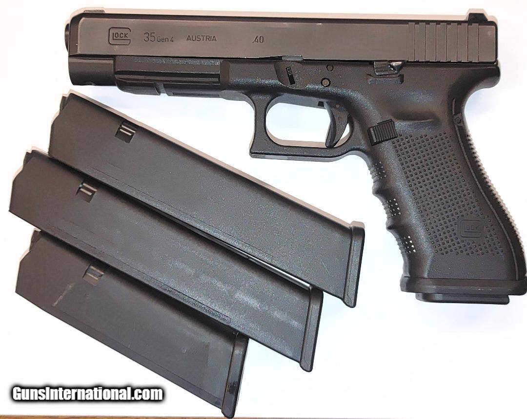 Description: Guns Listing ID: 1126435 Glock, 35 Gen4, Striker Fired, Semi-automatic, Polymer Frame Pistol, Full Size, 40 S&W, 5.31\" Barrel, Matte Finish, Black, Adjustable Sights, 15 Rounds, 2 Mags & 22 ROUNDS 2 MAGS HARD CASE Safe Action Trigger System 15 Round Capacity 4 Magazines 40 S&W Product Description With its extended barrel and extra long line of sight, the GLOCK 35 allows accurate hit patterns even during rapid firing. This has made the GLOCK 35 a widespread model among members of the practical shooting community. SOLD Manufacturer: GLOCK Model: .40 G23 GEN 4 Caliber Info: .40 S&W Condition: Used - Non-Certified Barrels: 5.31 BARREL Finish: BLACK |