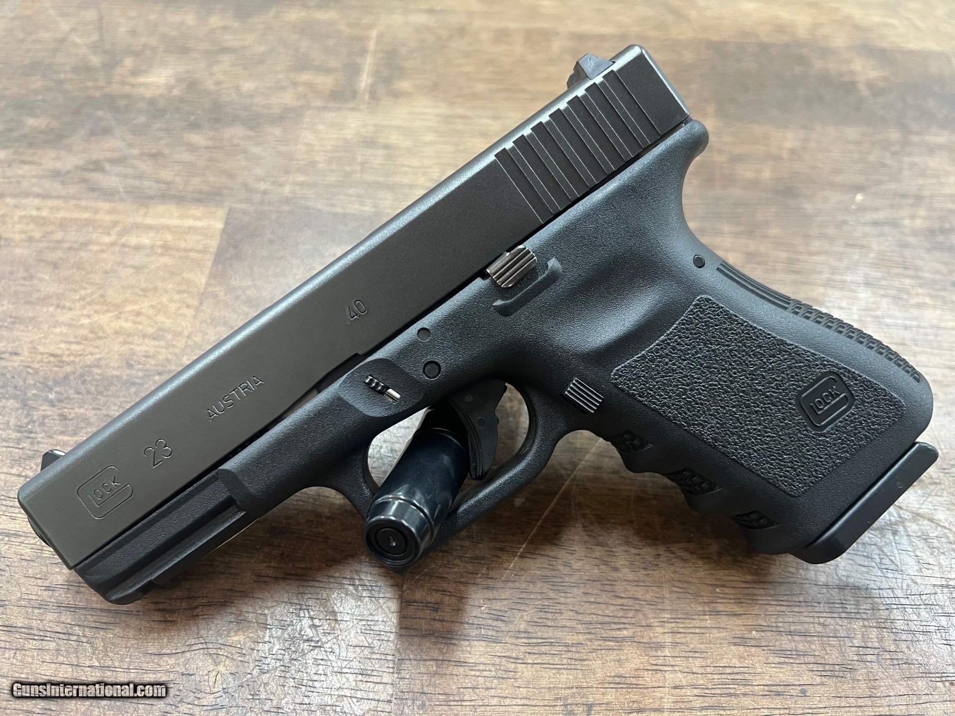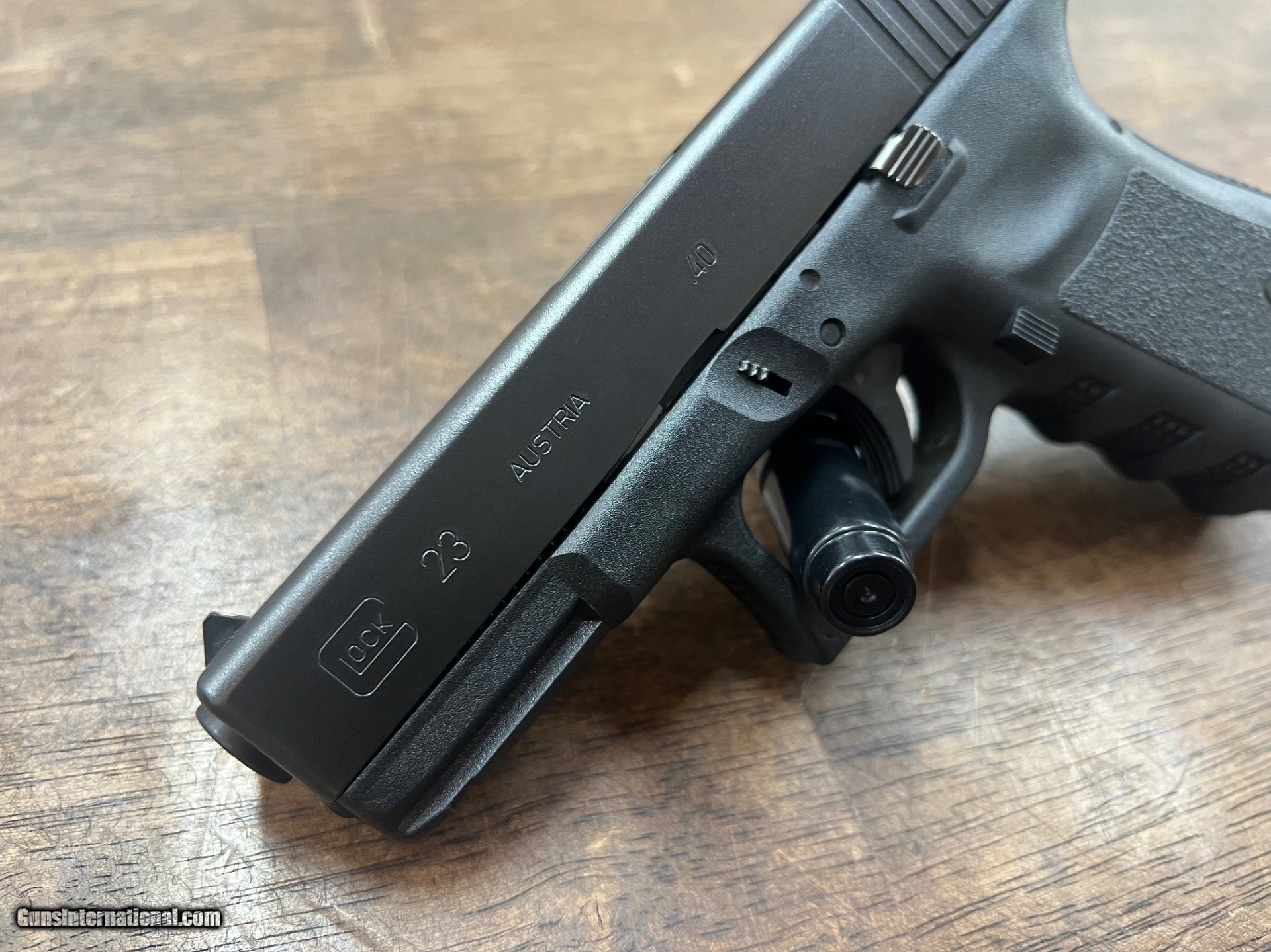 Description: Guns Listing ID: 494813 GLOCK 23 GEN 3 PISTOL W/ ONE MAG, SERIAL NUMBER FGF432, BLACK, 3.75\" BARREL, 40 CAL, SEMI - AUTOMATIC. OVERALL LENGTH: 7 INCHES. WEIGHT: 1.5 LBS W/ MAG. SOLD Manufacturer: GLOCK Model: G23 GEN 3 Caliber Info: .40 CALIBER Condition: Used - Non-Certified Barrels: 3.75 Finish: black |