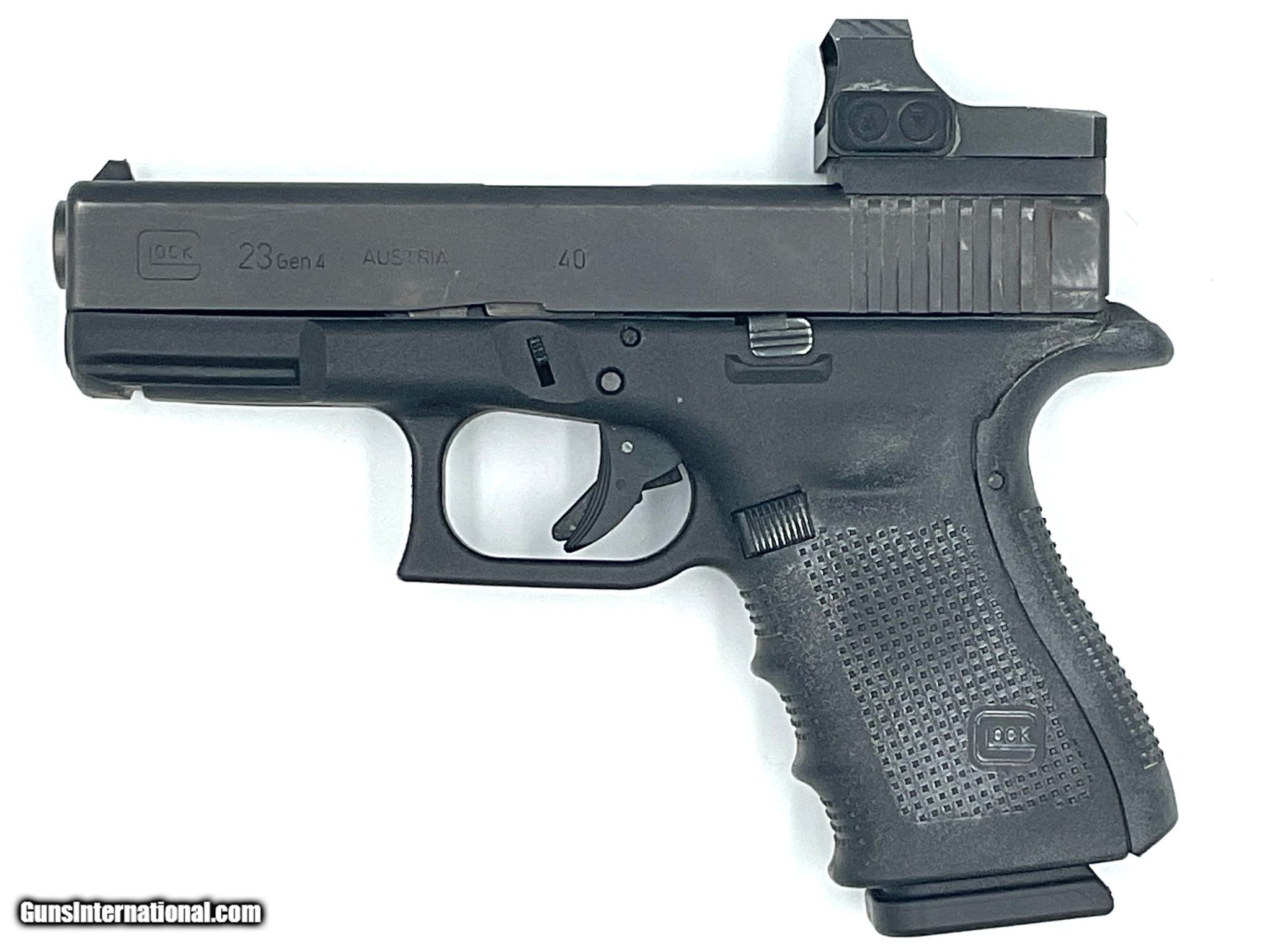 Description: Guns Listing ID: 609386 Glock 23 – .40 S&W – Fair Condition – Redfield Optic – 3 Magazines For sale is a Glock 23 chambered in .40 S&W, offered in fair condition and equipped with a mounted Redfield optic. The Glock 23 is a compact, duty-proven handgun known for its balance of size, capacity, and stopping power, making it a solid option for home defense, range use, or duty carry. This pistol shows honest wear consistent with regular use. There is minimal surface rust present on the left-side slide serrations, which does not affect function and should be easily manageable with routine maintenance. Aside from this cosmetic wear, the firearm remains mechanically sound, with smooth slide operation and Glock’s renowned reliability intact. A Redfield red dot is currently mounted, providing faster target acquisition and enhanced accuracy compared to traditional iron sights. This makes the pistol especially appealing for range shooters or those looking to transition into optic-equipped handguns without additional setup costs. The Glock 23 features Glock’s Safe Action® trigger system, a durable polymer frame, and a compact footprint that balances shootability with manageable recoil for a .40 S&W platform. Its versatility has made it a long-standing favorite among law enforcement and civilian shooters alike. Included with the pistol are three magazines, adding excellent value and convenience for extended range sessions or defensive readiness. If you’re looking for a reliable Glock platform with an optic already installed and are comfortable with some cosmetic wear, this Glock 23 represents a practical and affordable option. A dependable workhorse with added functionality at a great value. Manufacturer: GLOCK Model: G23 GEN 4 Caliber Info: .40 S&W Condition: Used - Non-Certified Barrels: 4.02" BARREL Action: SEMI AUTOMATIC Finish: black Price: $599.99 Contact Seller |