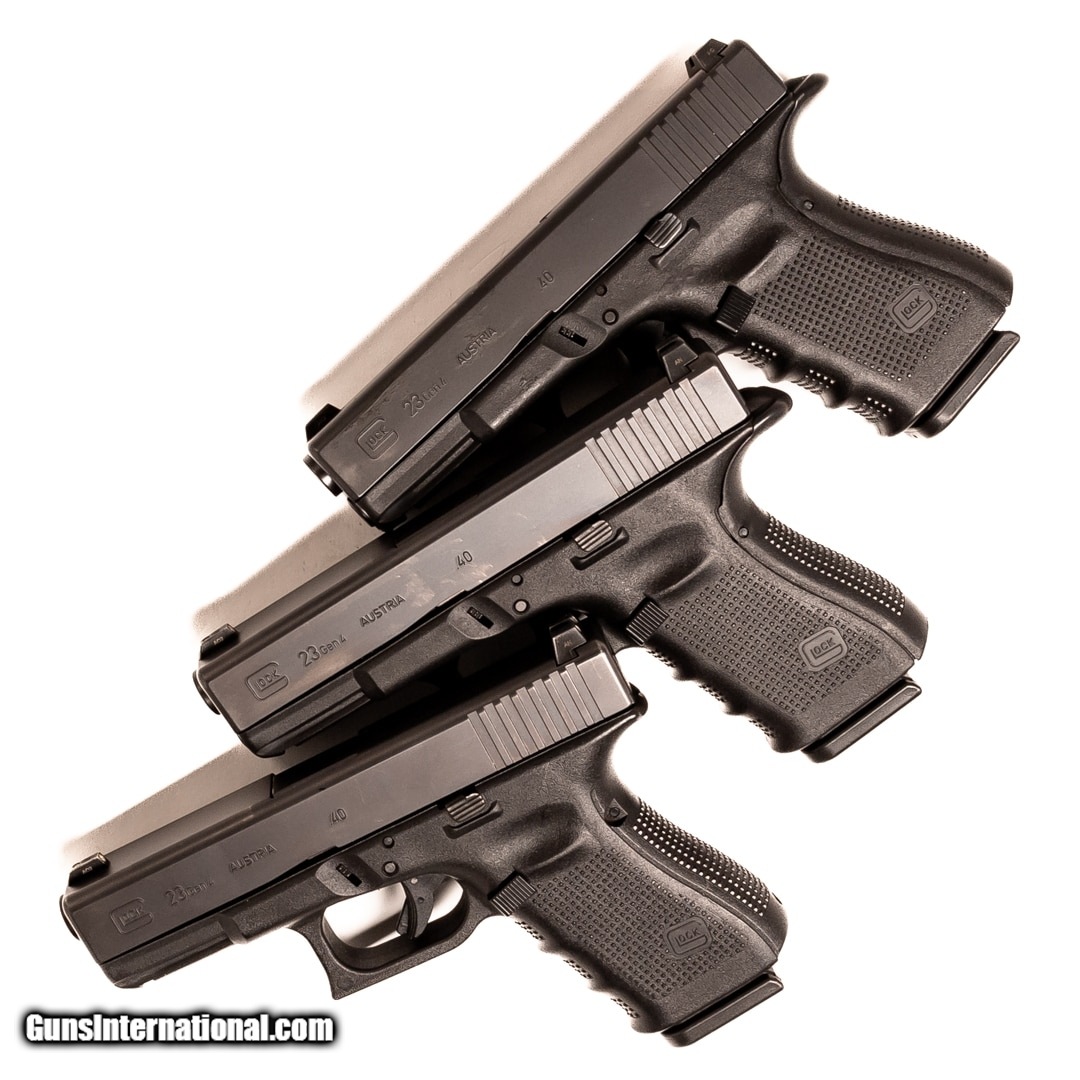 Description: Guns Listing ID: 690224 The Glock 23 Gen 4 is the .40 S&W equivalent of the Glock 19 Gen 4. Designed to be powerful, large enough for duty use, and small enough for concealment, the Glock 23 is an excellent universal sidearm. These G23 Gen 4’s were picked up by Guns as part of an LE trade-in. They’ve got the traditional cosmetic signs of wear from being carried daily by an officer, but overall they’re in Very Good condition. If you’re looking for a very robust sidearm at a great price, used Glock’s are the way to go. 1 magazine and a hard case are included. Any firearm that can stand up to daily wear and tear on the force is a trustworthy addition to your collection, whether you plan to use it for personal protection or as a range gun. Law enforcement trade-ins are usually fired less than other used firearms. They have wear from daily duty use, but most LEO only shoot their firearms when qualifying at the range. So, despite mild cosmetic damage from holsters and handling, the barrels and internal components are usually in great condition. Our police trade-ins are a unique opportunity to own a dependable, high-quality firearm at a great price! SOLD Manufacturer: GLOCK Model: G23 GEN 4 (LE TRADE IN) Caliber Info: .40 S&W Condition: Used - Certified Barrels: 4.02 BARREL |