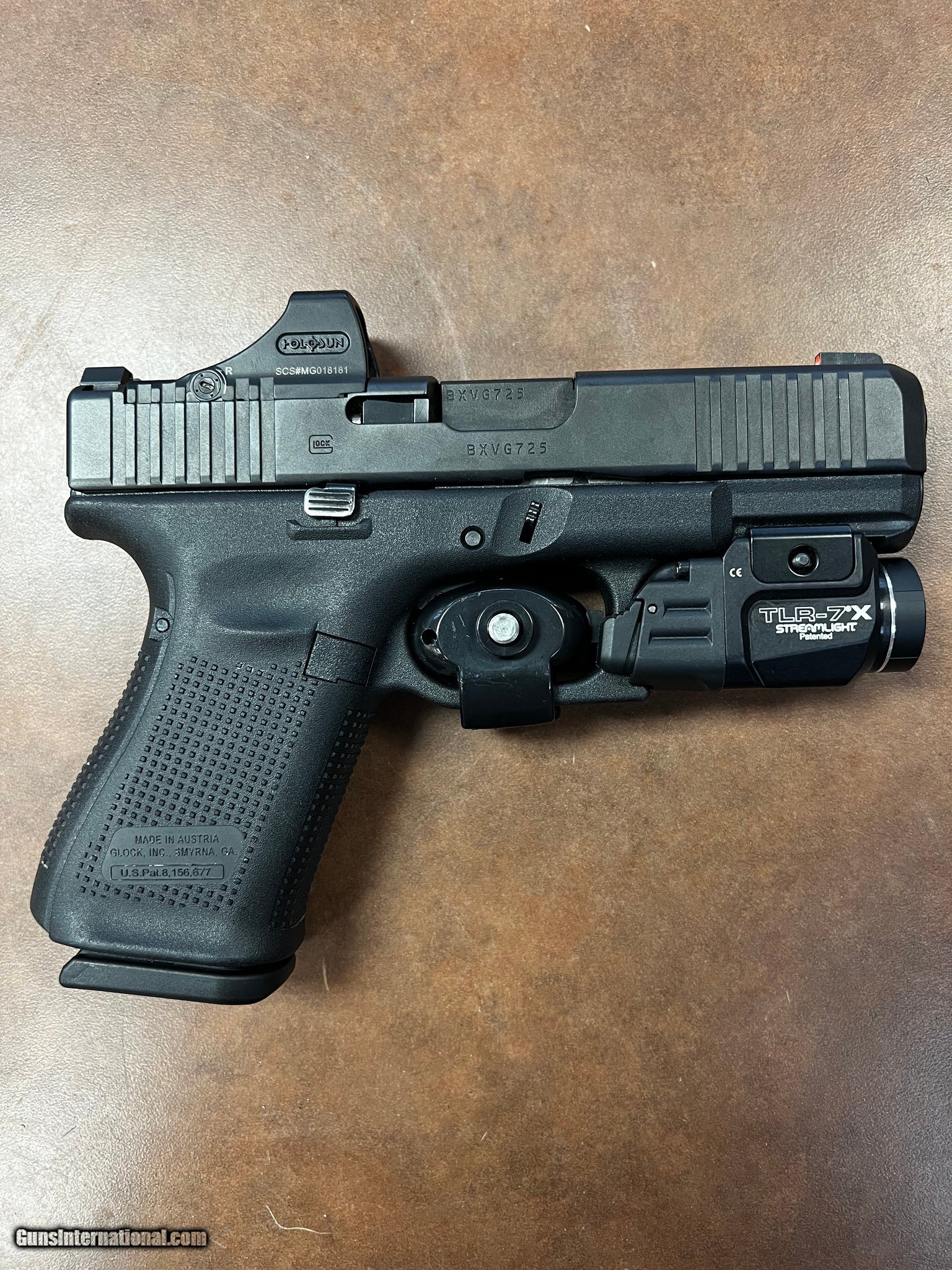 Description: Guns Listing ID: 526379 The GLOCK® 23 Gen5 MOS 40 S&W Semi-Auto Pistol is the 40 caliber version of the staple compact carry firearm that all are measured by. Sized between the sub-compact 27 and the full-size 22, the 23 is a happy medium. While most law enforcement agencies have made the switch to 9mm, several agencies still prefer the 40 S&W for its ability to eat through windshields and stay closer to course than the 9mm. For several years now, many have been getting their slides milled out by gunsmiths to cleanly attach a sight to their pistol. The MOS (Modular Optic System) has a slide cut out. Some still prefer a custom cut, while many prefer the ease of use with the MOS system. The G23 comes with the same popular upgrades of all Generation 5 GLOCK pistols like the Glock Marksman Barrel and removal of finger grooves. The slide release is ambidextrous and the magazine catch is reversible. Comes with Streamlight TLR-7X, Holosun SCS, case and 3 mags. SOLD Manufacturer: GLOCK Model: G23 GEN 5 Caliber Info: .40 S&W Condition: Used - Non-Certified Barrels: 4.02 Action: SEMI AUTOMATIC Finish: black |