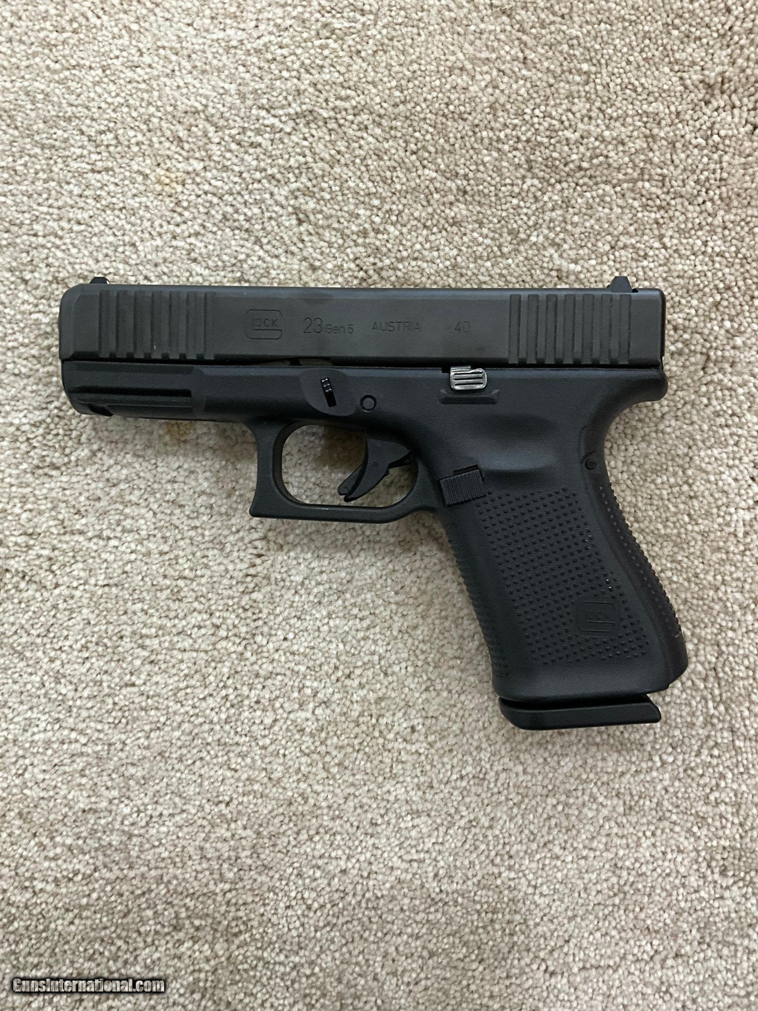Description: Guns Listing ID: 579370 Very good condition comes with two extra mags, original case and an extra set of grips Manufacturer: GLOCK Model: G23 GEN 5 Caliber Info: .40 S&W Condition: Used - Non-Certified Barrels: 4" BARREL Action: STRIKER FIRED Finish: BLACK Weight: 1.6 lbs. Price: $450.99 Contact Seller |
