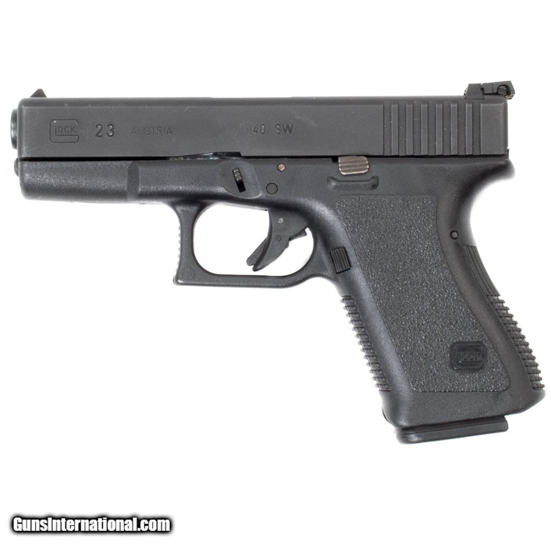 Description: Guns Listing ID: 556020 The Glock G23 is a polymer-framed pistol that offers unparalleled durability and reliability, even in adverse conditions. Crafted with a design that remains relatively lightweight, this pistol is popular as a service weapon and equally suited for self-defense. The pebbled grip is designed for minimal slippage and greater comfort, and to this end, features a lined front and back strap. This Glock G23 Gen 2 includes the original storage case, owner‚s manual, one 13-round magazine, loading tool, trigger lock, and a holster. Get the best bang for your buck when you get a Certified Used Firearm . When you see the Certified Used stamp on any of our firearms, you can be confident that you‚re getting exactly what you want – a gun only in very good to excellent condition and held to the highest quality standard. All Certified Used Guns come with a ‚no questions asked‚ return policy . SOLD Manufacturer: GLOCK Model: G23 GEN2 Caliber Info: .40 S&W Condition: Used - Certified Barrels: 4.0 BARREL Action: STRIKER FIRED Finish: black Weight: 1.6 LBS |