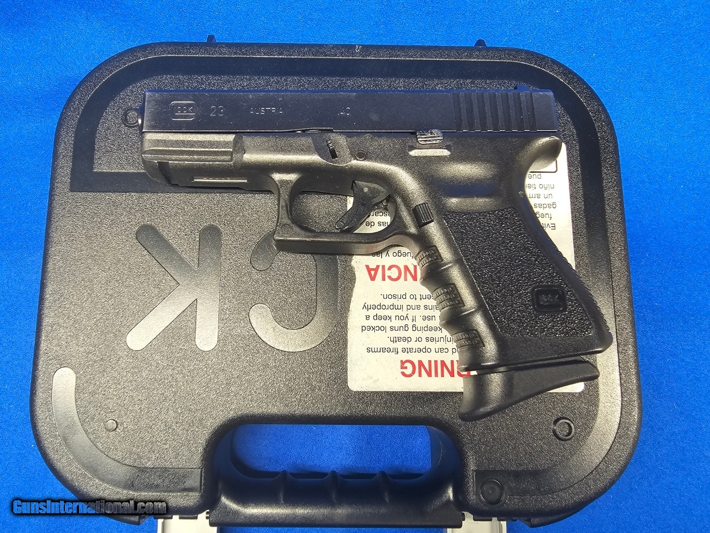 Description: Guns Listing ID: 975871 Here we have a Police trade in Glock 23 Gen 3. This firearm comes with 2 13 round magazines. SOLD Manufacturer: GLOCK Model: G23 GEN3 Caliber Info: .40 S&W Condition: Used - Non-Certified Barrels: 4.02 BARREL Finish: BLACK |