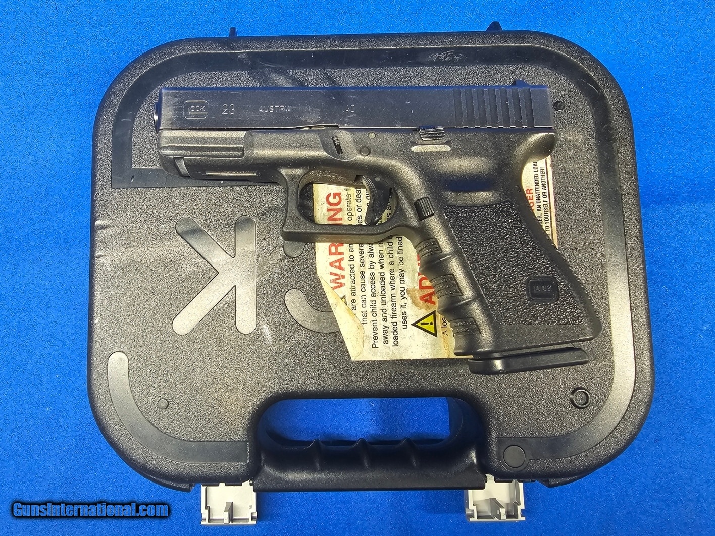 Description: Guns Listing ID: 975848 Here we have a Police trade in Glock 23 Gen 3. This firearm comes with 2 13 round magazines. SOLD Manufacturer: GLOCK Model: G23 GEN3 Caliber Info: .40 S&W Condition: Used - Non-Certified Barrels: 4.02 BARREL Finish: BLACK |