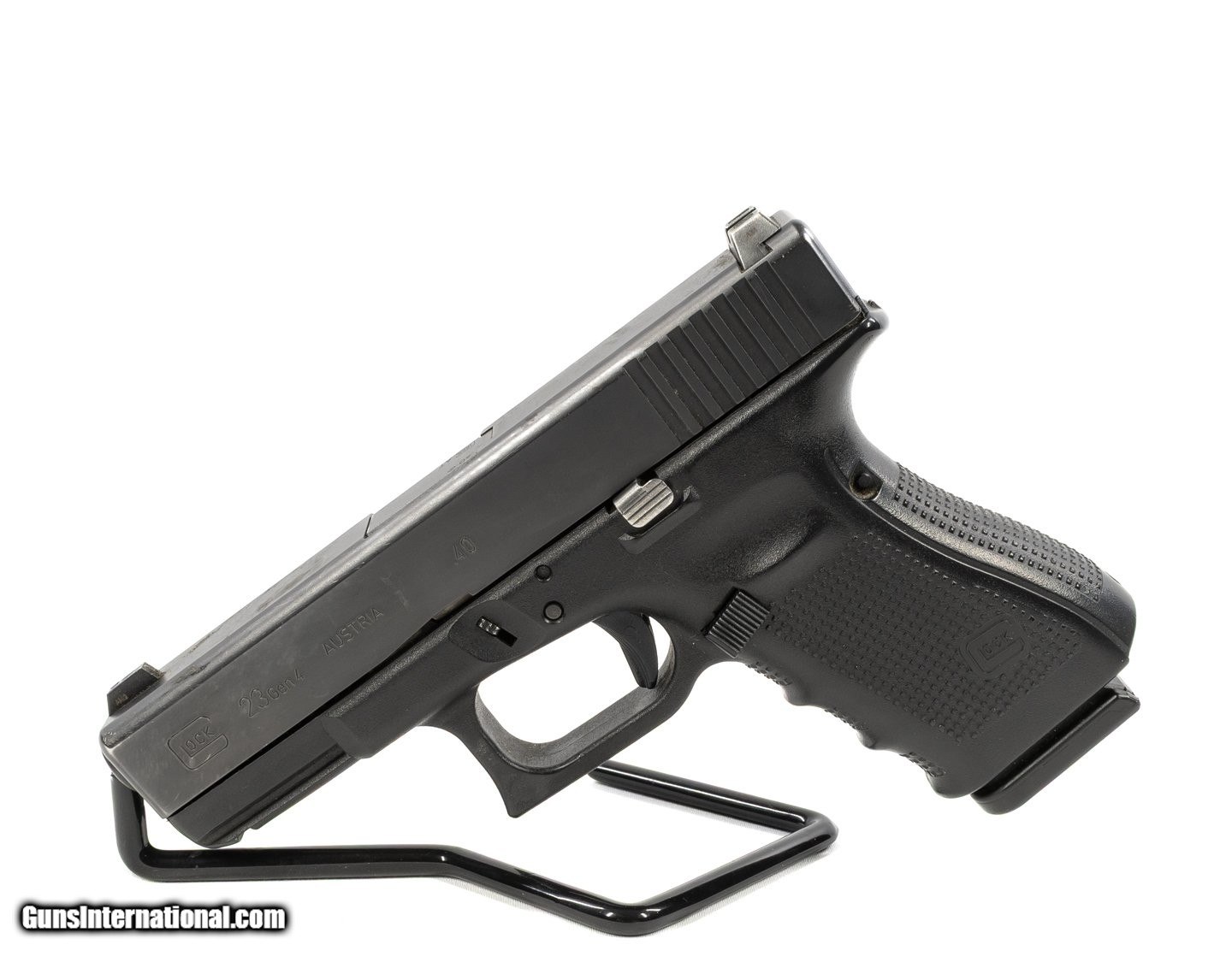 Description: Guns Listing ID: 596508 Police Trade-In Glock 23 Gen 4 Grade 3 .40 S&W 13+1 4.02\" Manufacturer: Glock Model: G23 Gen4 Condition: Grade 3 Caliber: .40 S&W Action: Semi-Auto / Striker Fired Barrel Length: 4.02" Capacity: 13+1 Size: Compact • The photos used are representative of the current batch of firearms received. Because of this, the item you receive may slightly vary from the item featured in photos. This may include the boxes/cases, accessories included, bore condition, and minor cosmetic flaws such as scratches, dents, blemishes, etc. We stand behind the condition of our firearms and will work with any major discrepancies. • Please be aware that we have not test-fired this firearm. Unless stated otherwise, expect this firearm to fire and function safely. SOLD Manufacturer: GLOCK Model: G23 Gen4 Caliber Info: .40 S&W Condition: Used - Non-Certified Barrels: 4.02" BARREL Action: SEMI AUTOMATIC Finish: black |