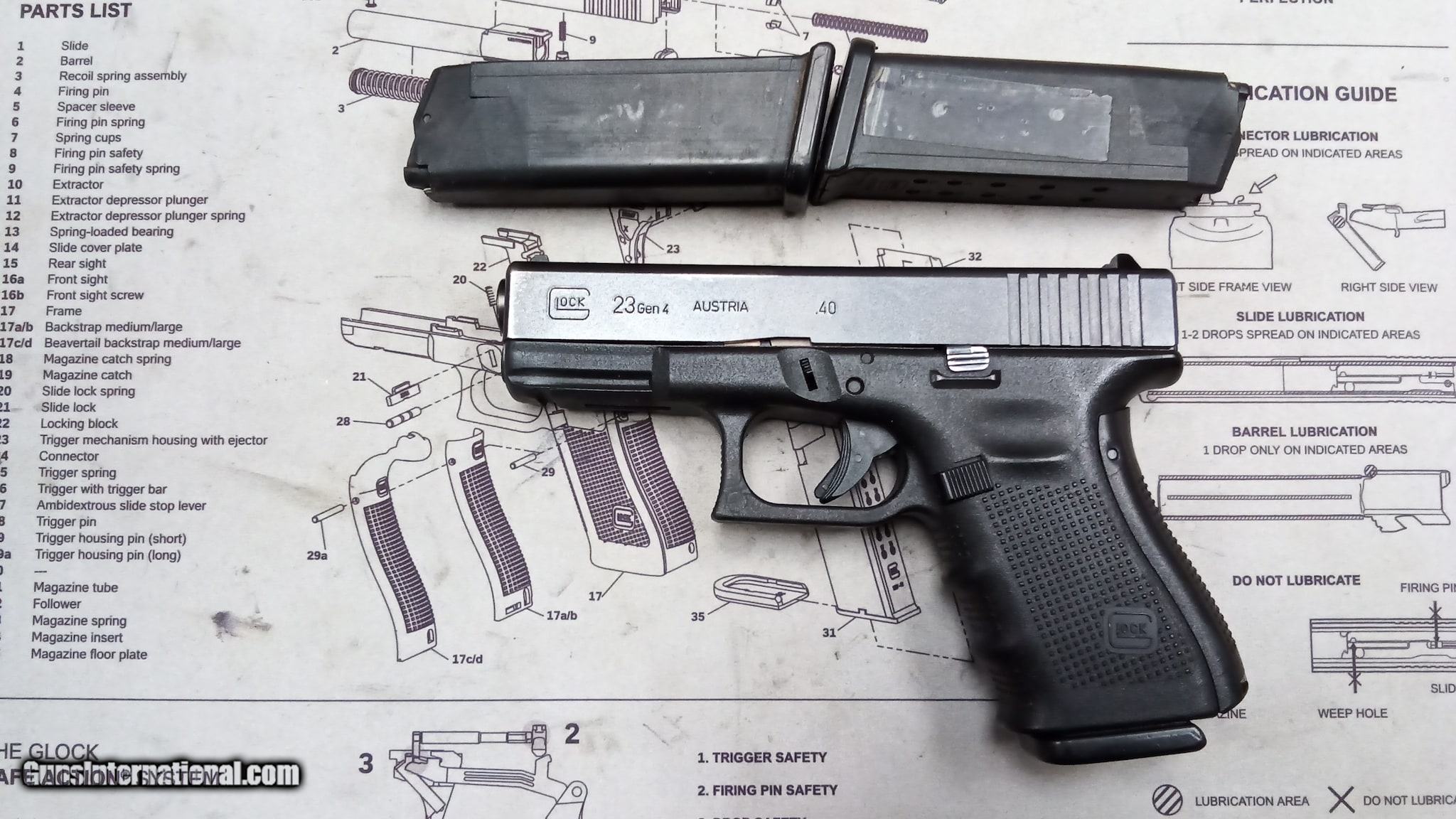 Description: Guns Listing ID: 871877 Used Glock 23 Gen 4. LE trade. Comes with 3 magazines. SOLD Manufacturer: GLOCK Model: GLOCK 23 GEN 4 Caliber Info: .40 S&W Condition: Used - Non-Certified Barrels: 4.02 BARREL Finish: BLACK |