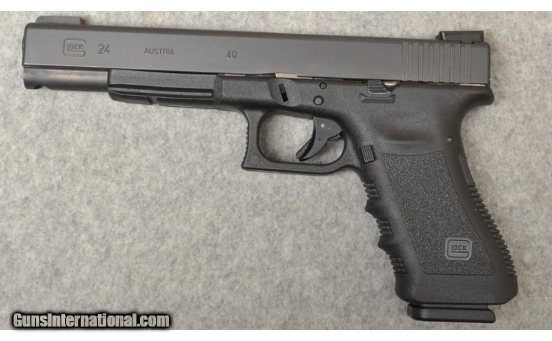 Description: This Glock 24 is in great condition with some wear and scratches on the slide as well as wear on the barrel. This handgun will make an excellent addition to your collection and will be a very good competition gun. The slide is cut out to help lighten up on weight, and the frame has a rail, so you are able to attach any lights or lasers you see fit. The action is very smooth and is followed by a light crisp trigger break. .40 S&W SOLD Chambers: .40 S&W Metal Condition: Great Bore Condition: Great Barrels: "Rifled, 6"" Barrel Triggers: Trigger safety Weight: 2 lbs Sights: Front and rear fiberoptic sights Item Location: Columbus, OH |