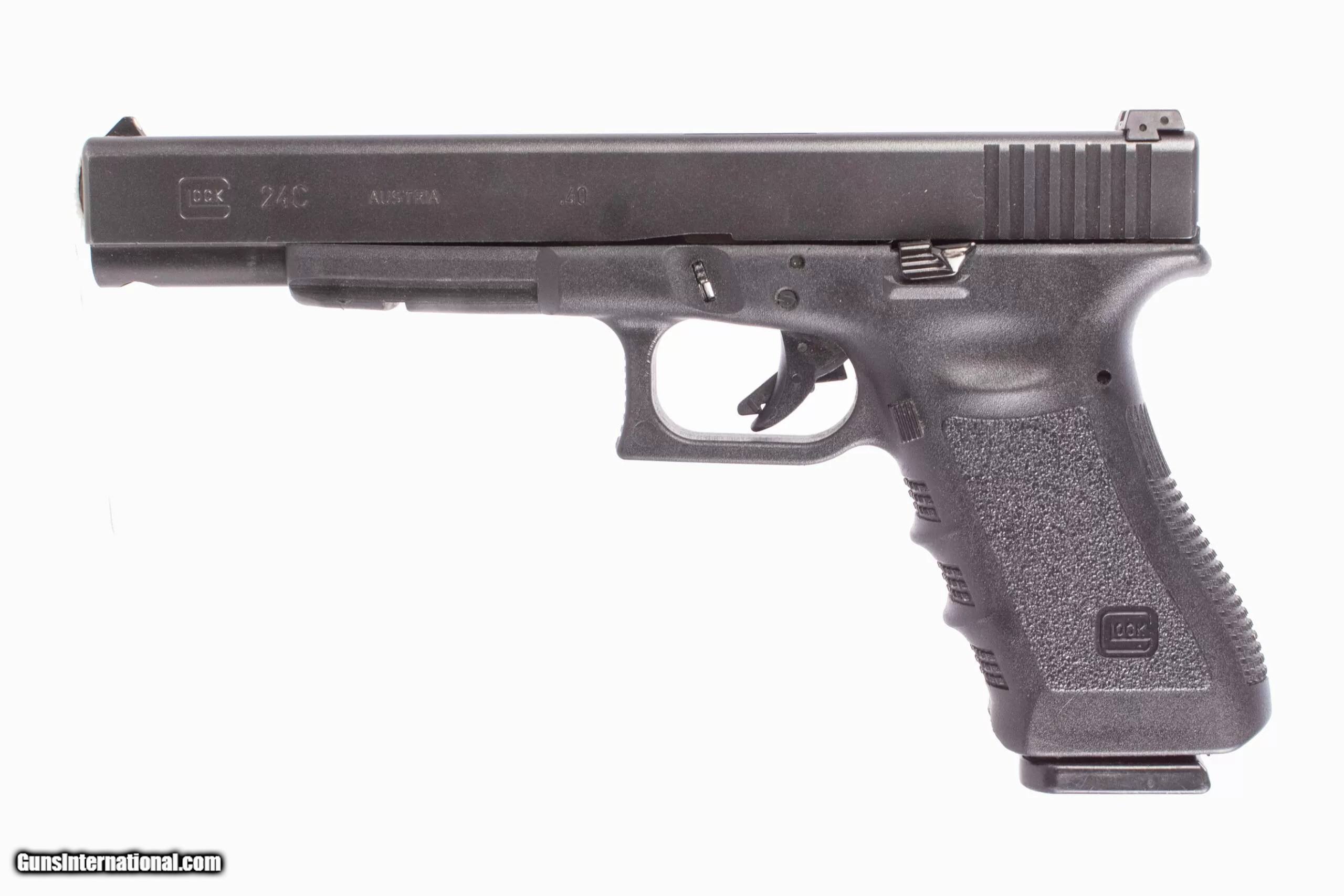 Description: Gen 3 Glock 24C chambered for .40 Smith & Wesson with six-inch, integrally compensated barrel, finger grooved-grip with small mag release, accessory rail, and standard Glock sights. Action appears to be in good working order with bright bore and defined rifling. Includes Case , additional barrel, and five magazines. The NRA grading condition for this USED firearm is Good - Very Good. We ship domestically in the United States. Additional shipping rates apply to Alaska and Hawaii. Dury’s Lifetime Warranty: All firearms purchased from Dury’s Gun Shop, NEW or USED, are covered by a lifetime warranty. We will repair or replace, at our discretion, any firearm purchased from Dury’s Gun Shop, Inc. for as long as it is owned by the purchaser. This warranty is not transferable. WE BUY GUNS! NO COLLECTION TOO BIG OR SMALL FOR OUR GUNS INTERNATIONAL CUSTOMERS ALL OF OUR FIREARMS CAN BE PURCHASED DIRECTLY FROM OUR DURY’S GUNS SITE ! SOLD Manufacturer: Glock Model: 24C Caliber Info: 40 S&W Barrels: 6inches |