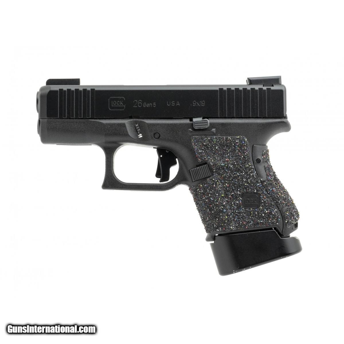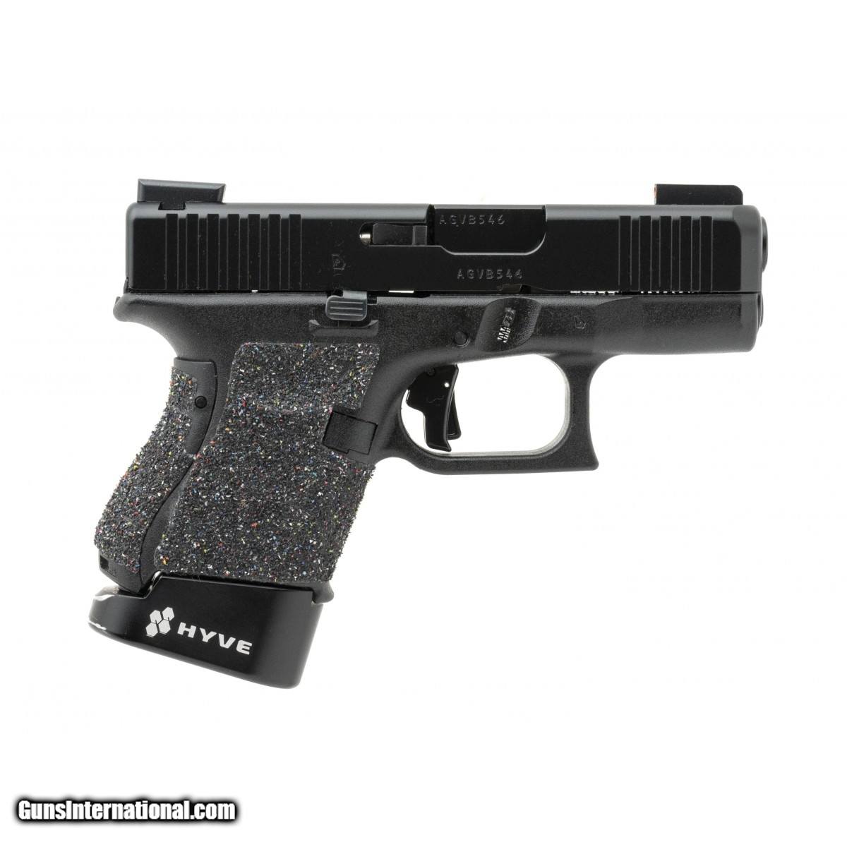 Description: " SN: AGVB546. Polymer frame sub-compact pistol, with a 3.43-inch barrel. Comes with TruGlo TFX Pro sights, an Apex trigger kit, (2) Hyve Technologies +2 Extended base plates. Includes IWB Holster. Overall excellent condition. Comes with box and spare magazine SOLD |