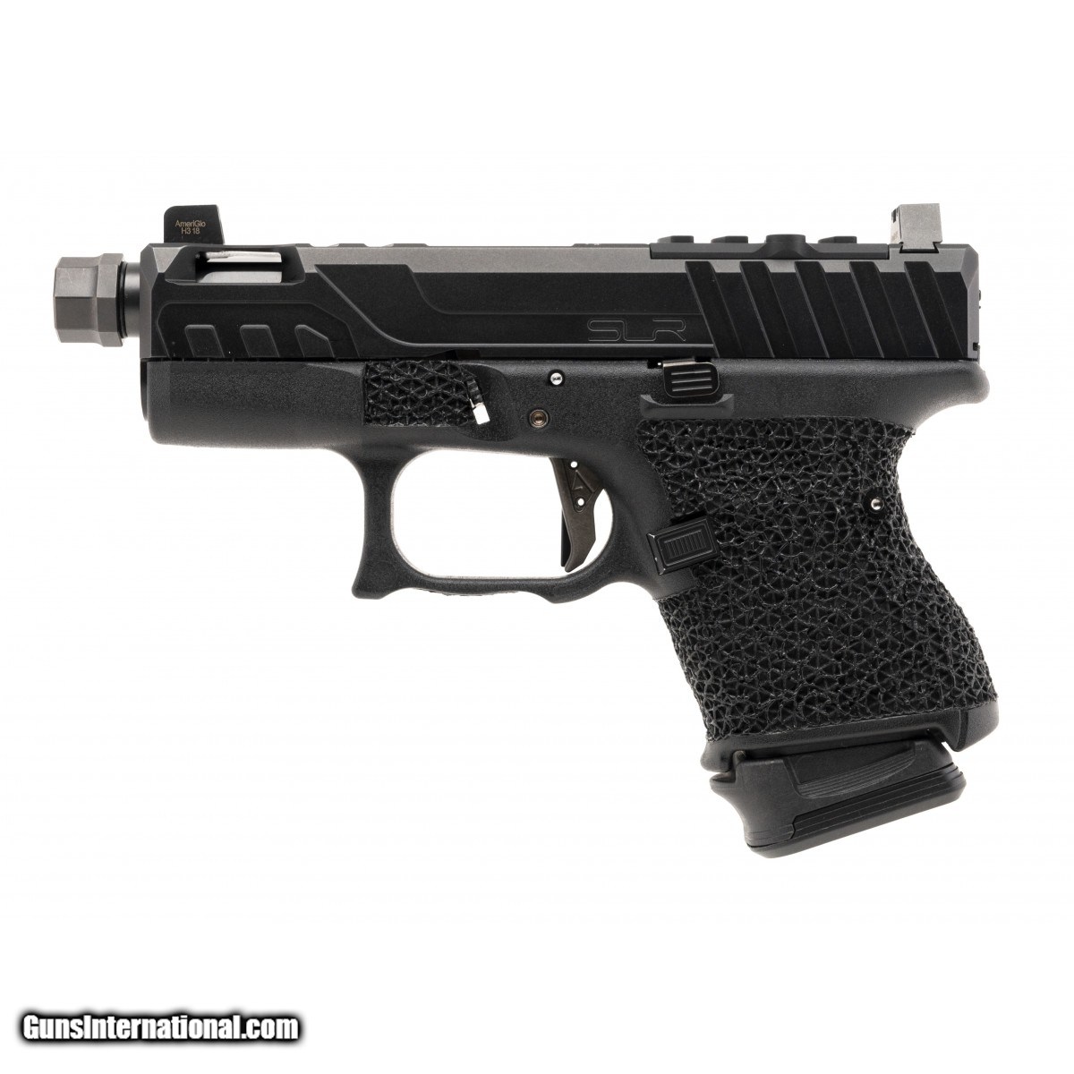 Sub-compact Gen 4 with SLR Rifleworks slide cut with optic cut and porting. Agency threaded barrel and drop in flat trigger. Frame stippling and extended magazine release. Overall very good condition.
