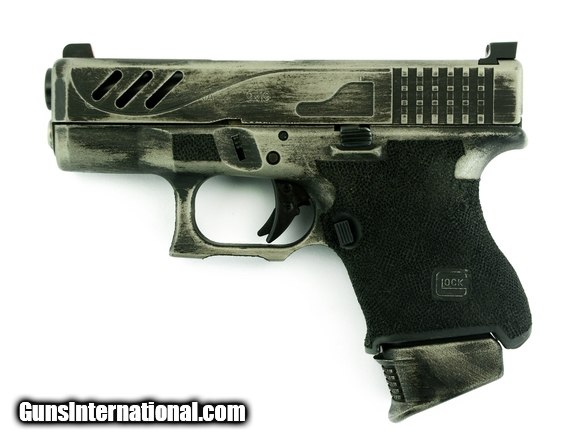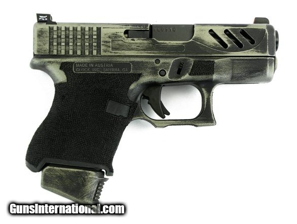Description: Glock 26 9mm caliber pistol. Custom Glock 26 with gray wartorn finish, grip stippling, upgraded trigger and night sights in excellent condition.