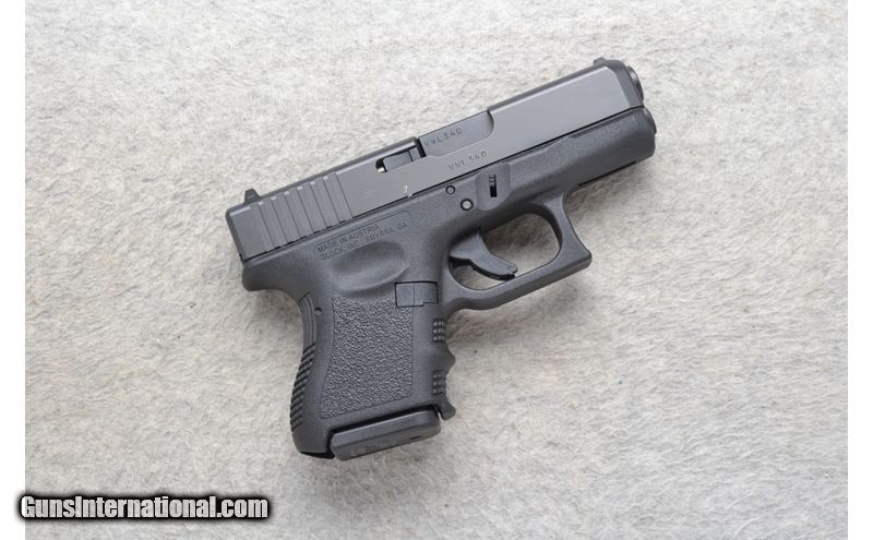 Description: This Glock Model 26 is a right hand semi-auto pistol in 9mm Cal. It has a 3.25 inch barrel with a rear serrated slide. A blade front and notch rear sight. The grip is a textured black polymer. It has a squared trigger guard. 9mm Parabellum SOLD Chambers: Semi-Auto 10 round magazine. Metal Condition: Excellent. Bore Condition: Excellent. Barrels: 3.25 inch barrel with a rear serrated slide. Weight: 20 oz. Sights: Blade front. Notch rear. Both with white highlights. Item Location: Richfield, WI |