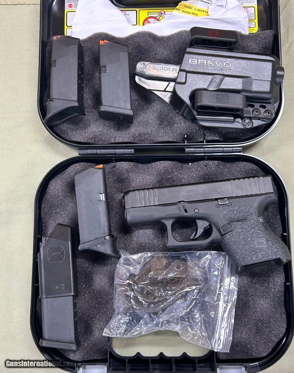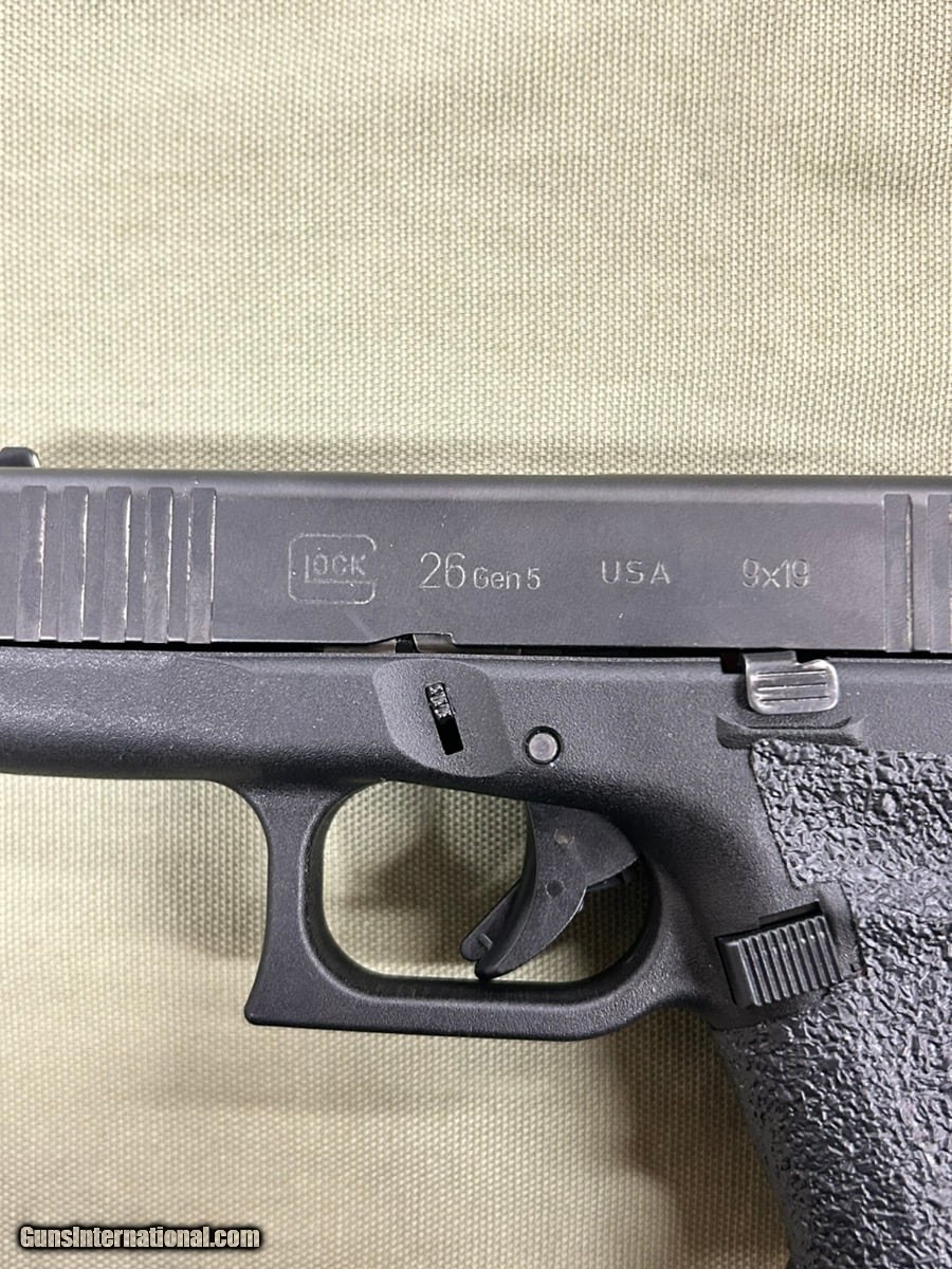 Description: Guns Listing ID: 810742 Inventory Number: FCS073553 Description: PISTOL: GLOCK MODEL 26 GEN 5, SEMI - AUTOMATIC, 9X19MM, BLUE, YES - INCLUDES HARD PROTECTIVE CASE, 4\", W/ EXTRAS Specific Details: NRA Modern Gun Condition Rating Standards: VERY GOOD: In perfect working condition, no appreciable wear on working surfaces, no corrosion or pitting, only minor surface dents or scratches. Finish / Color: Blue Case & Box: Yes - Includes hard protective case Caliber: 9X19MM Action: Semi - Automatic Magazine: Yes - and includes 3 extra magazines and 1 extension. Holster: Yes SOLD Manufacturer: GLOCK Model: 26 G26 GEN 5 Caliber Info: 9MM LUGER (9X19 PARA) Condition: Used - Non-Certified Barrels: 4 BARREL Finish: BLUE |