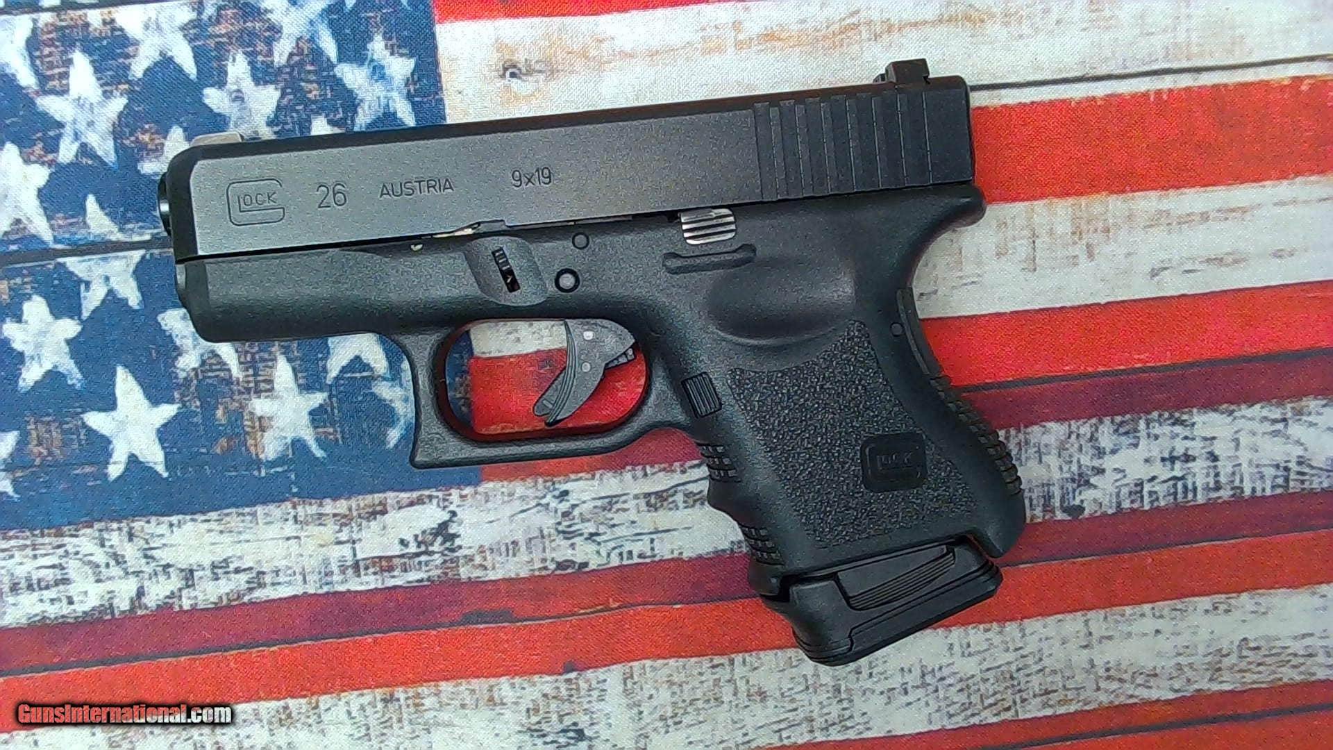 Description: Guns Listing ID: 1102150 This is a very easily concealed firearm for self defense. Overall it is in very good condition. No real signs of holster wear or other extenal blemishes other than on the slide release. This firearm would have originalyy been sold with fixed Glock sights, but it‚‚s been upgraded to night sights. The sights themselves show wear, possibly from a holster. This pistol comes with three 12 round after market PMAGS and a Glock hard case (non original). Known as the BABY GLOCK, the GLOCK 26 has been the most sought-after concealed carry option since its release in 1994 - a market once dominated by the 5-round snubnose revolver. The magazine capacity of 10 rounds is standard, and the highly accurate firing characteristics explain why it is the mainstay backup option among security personnel and agencies worldwide SOLD Manufacturer: GLOCK Model: 26 Gen 3 Caliber Info: 9MM LUGER (9X19 PARA) Condition: Used - Non-Certified Barrels: 3.42 BARREL Finish: BLUE |