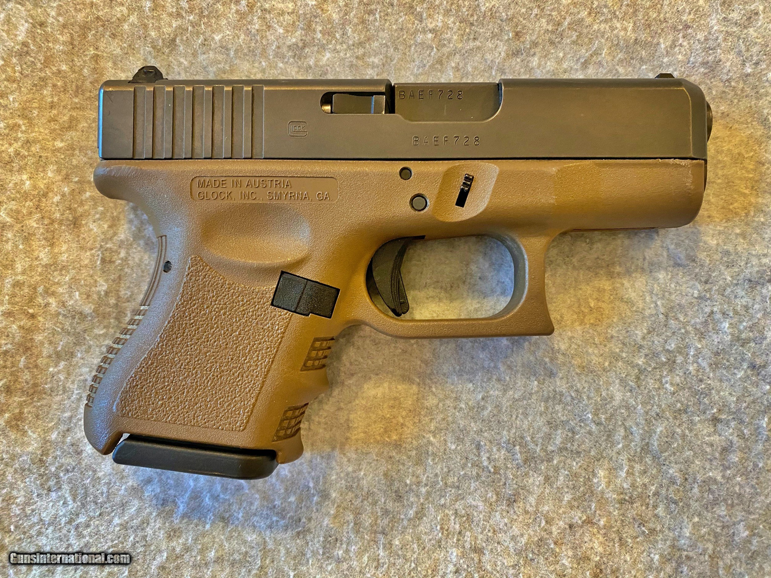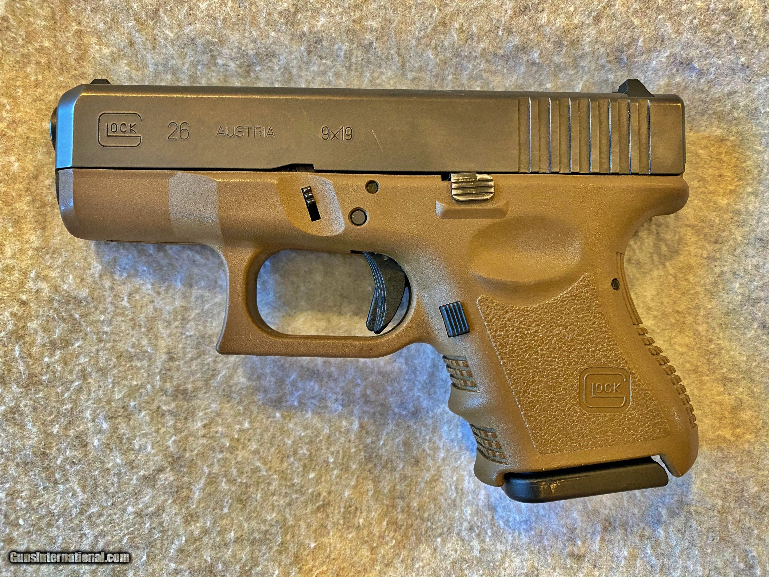 Description: THIS IS A GLOCK 26 GEN 3 WITH A MATTE DEEP BLUE UPPER AND DARK EARTH LOWER. IT COMES WITH REGULAR SIGHTS AND A GLOCK 10 RD MAGAZINE AND A GLOCK 24 RD MAGAZINE. GLOCK 26 Similar in size and weight to the small-frame snub-nose revolvers it has replaced, the GLOCK 26 fires the popular 9 mm Luger cartridge with minimum recoil and more on-target accuracy at a fast rate of fire. It’s an ideal backup for those who use the GLOCK 17 or GLOCK 19 for open carry, even more so since the larger 9mm magazines fit the G26 as well. Caliber 9x19mm System Safe Action® Mag. Capacity Standard: 10 Optional: 12 / 17 / 19 / 15 / 24 / 31 / 33 Barrel Length 87 mm | 3.43 inch Weight without magazine 550 g | 19.40 oz Weight with empty magazine 610 g | 21.52 oz Weight with loaded magazine 730 g | 25.75 oz Trigger Pull 28 N 1 Length (Overall)**165 mm | 6.50 inch 2 Slide Length159 mm | 6.26 inch 3 Width (Overall)32 mm | 1.26 inch 4 Slide Width25,5 mm | 1.0 inch 5 Height incl.Mag.106 mm | 4.17 inch 6 Line of Sight (Polymer)137 mm | 5.39 inch Line of Sight (Steel)136 mm | 5.35 inch Line of Sight (GNS)135 mm | 5.31 inch 7 Trigger Distance**72 mm | 2.83 inch TERMS AND CONDITIONS PRICES SHOWN ARE FOR PAYMENT BY U.S.P.S. MONEY ORDER OR BANK ISSUED CASHIERS CHECK. CREDIT CARD PAYMENTS ARE 3% ADDITIONAL. UPON CLOSING OF THE SALE, YOU WILL BE EMAILED AN INVOICE FOR PAYMENT. PAYMENT MUST BE RECEIVED WITHIN 4 BUSINESS DAYS OF THE INVOICE DATE OR THE SALE WILL BE CANCELLED AND BUYER REPORTED AS “A NON-PAYMENT BUYER”. IF YOU HAVE NOT SELECTED A FORM OF PAYMENT WITH YOUR BUYERS ORDER, YOU WILL BE BILLED FOR CREDIT CARD PAYMENT. IT IS UP TO THE BUYER TO DETERMINE IF THE FIREARM AND OR MAGAZINES ARE LEGAL IN YOUR AREA PRIOR TO YOUR PURCHASE. THE FIREARM WILL BE SHIPPED TO THE FFL HOLDER THAT YOU SPECIFY. THEIR RELEASE TO YOU IS BASED ON YOUR PRIOR ARRANGEMENTS WITH THEM. PLEASE REVIEW THE PHOTOS AND IF YOU HAVE ANY QUESTIONS, PLEASE EMAIL US. WE TAKE DETAILED PHOTOS AND ADD DESCRIPTIONS, BUT THERE MAY BE SOMETHING UP CLOSE THAT YOU WANT TO SEE OR ASK ABOUT. SOMETIMES OUR ITEMS SELL LOCALLY. WE WILL NOT SELL AN ITEM WHEN A BUYER COMMITS TO PURCHASE VIA EMAIL. SHIPPING NORMAL INSURED SHIPPING TO CONTIGUOUS UNITED STATES: LONG GUNS $45.00 HANDGUNS $35.00 HAWAII AND ALASKA: PRICE UPON REQUEST SALES TAX IF YOU ARE A RESIDENT OF NORTH CAROLINA, WE ARE REQUIRED TO COLLECT A 7% STATE SALES TAX BUY IT NOW WE FREQUENTLY RECEIVE MESSAGES AFTER HOURS FROM BUYERS THAT WANT TO KNOW IF A FIREARM IS STILL AVAILABLE. IF IT IS ONLINE IT IS AVAILABLE UNTIL SOMEONE CLICKS THE BUY IT NOW BUTTON. IT IS NOT UNUSUAL TO HAVE MORE THAN ONE INQUIRY FOR THE SAME FIREARM. IT IS AVAILABLE UNLESS STATED OTHERWISE WITH THE PRICE, OR SOMEONE CLICKS THE BUY IT NOW BUTTON. IF YOU SEE A FIREARM THAT YOU WANT, CLICK THE BUY IT NOW BUTTON. THE FIREARM IS NOW YOURS PENDING PAYMENT. IT WILL BE REMOVED FROM THE LISTINGS. WE WILL CONTACT YOU TO MAKE THE ARRANGEMENTS FOR PAYMENT AND SHIPPING. SOLD Manufacturer: GLOCK Model: 26 GEN 3 Serial Number: BAEXXXX Extras: 1 10 RD AND 1 24 RD GLOCK MAGAZINES |
