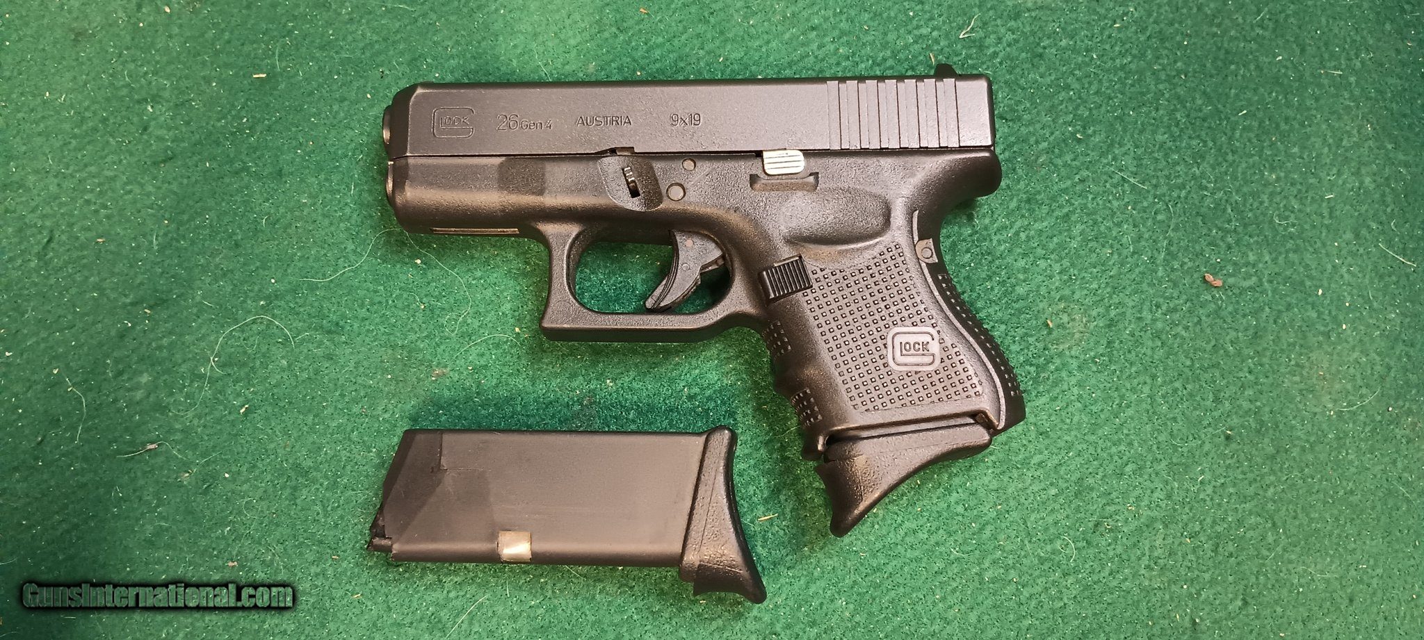 Description: Guns Listing ID: 1358242 This Glock 26 Gen 4 is chambered in 9mm and has a 3.5\" barrel. This one is in excellent condition and comes with two Glock 10rd. magazines. SOLD Manufacturer: GLOCK Model: 26 Gen 4 Caliber Info: 9MM LUGER (9X19 PARA) Condition: Used - Non-Certified Barrels: 3.5 BARREL Finish: BLACK |