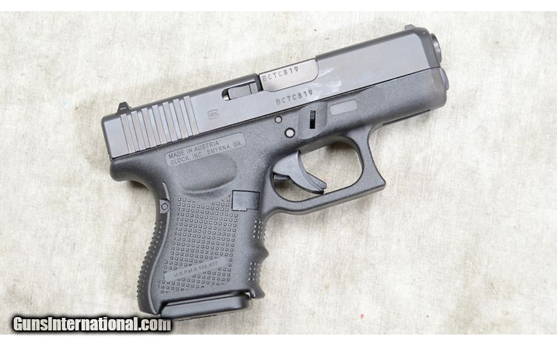 Description: The "Baby Glock" compact 9MM with two high capacity (10 round) magazines, safety integral with the trigger, and easy to see sights. 9mm Luger SOLD Chambers: 10+1 capacity Metal Condition: Excellent. Wood Condition: Excellent. Bore Condition: Bright and shiny. Barrels: 3-1/4 inch Triggers: Factory single action trigger. Butt Pad: Black plastic. Weight: 21 oz. Sights: Post and notch with white alignment aids. Item Location: Rogers |