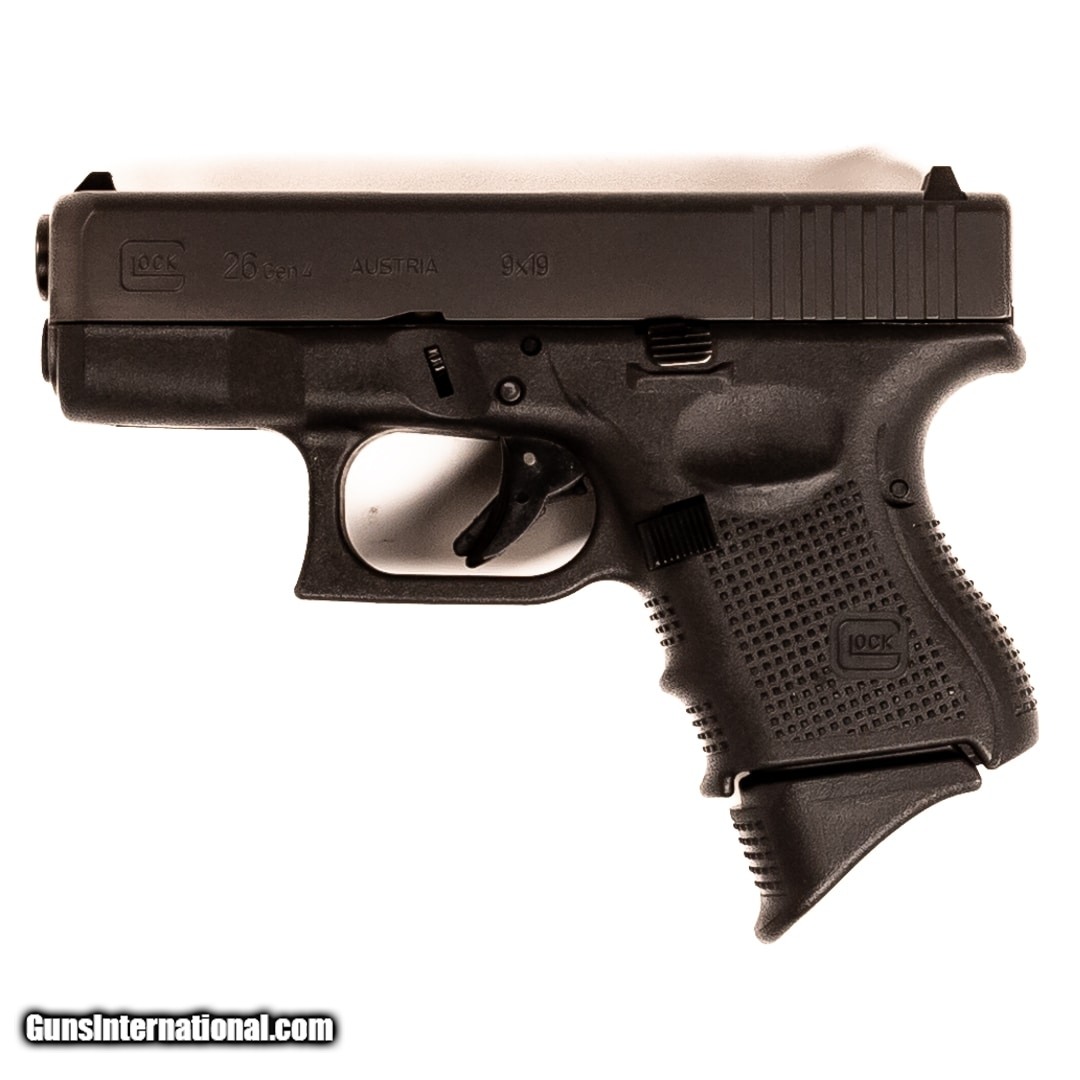 Description: Guns Listing ID: 717361 Also known as the \"Baby Glock,\" the Glock 26 is one of America‚‚s most popular concealed carry options. This sub-compact pistol is built on the company‚‚s signature lightweight polymer frame with rough texture technology for added durability. The Gen 4 model sports an aggressively textured grip and finger grooves to ensure a secure grasp through every shot. This G26 Gen 4 includes the original case, manual, three 10-round magazines, a loader, and backstraps. Get the best bang for your buck when you get a Certified Used Firearm . When you see the Certified Used stamp on any of our firearms, you can be confident that you’re getting exactly what you want – a gun only in very good to excellent condition and held to the highest quality standard. All Certified Used Guns come with a ‘no questions asked’ return policy . PLUS, ALL CERTIFIED USED GUNS SHIP FRE SOLD Manufacturer: GLOCK Model: 26 GEN 4 Caliber Info: 9MM LUGER (9X19 PARA) Condition: Used - Certified Barrels: 3.4 barrel Finish: BLACK |