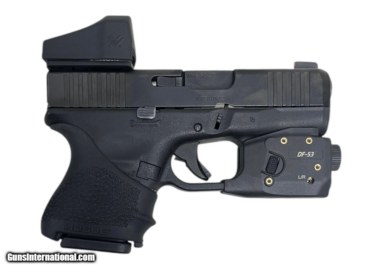 Description: Guns Listing ID: 483572 Pistol is preowned and in great overall condition. Very light handling marks from use are present but absolutely nothing egregious or particularly noteworthy. A Defentac DF-53 laser/light combo and a Vortex Venom 3MOA reflex sight as well as the original case and three 10-round magazines are included. Barrel is 3.25”, chambered in 9mm with a capacity of 10 rounds. All orders are shipped within two business days following payment - orders are often shipped sooner than this. Payment is required within 48 hours of listings end. Listing photos show everything that is included with purchase - anything not pictured should NOT be assumed to be included unless otherwise stated in listing description. SOLD Manufacturer: GLOCK Model: 26 Gen 5 Condition: Used - Non-Certified Barrels: 3 Gauge Info: 9MM LUGER (9x19 PARA) Finish: black |