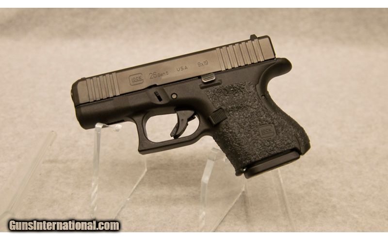 Description: Glock 26 Gen 5, chambered in 9mm, with 10 round magazines. Features include: standard plastic sights, recessed thumb rests, rough textured grips, and black finish 9mm Luger SOLD Chambers: 9mm Metal Condition: Very Good Bore Condition: Very Good Barrels: 3.25' Sights: Standard Plastic Sights Item Location: Fort Mill, SC |