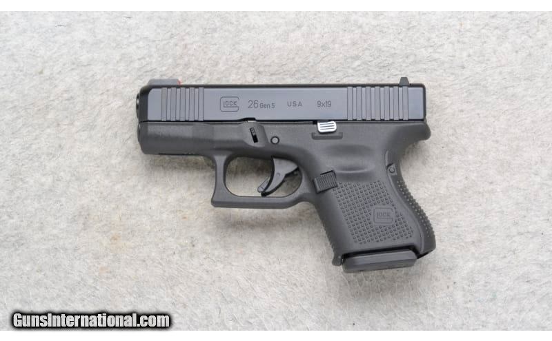Description: This Glock Model 26 Gen 5 is a right hand semi-auto pistol in 9mm Cal. It has a 3.5 inch barrel with a front and rear serrated slide. A red high visibility front sight and a white outline notch rear sight. The grip is a textured black polymer. 9mm Parabellum SOLD Chambers: 10 round magazine. Metal Condition: Excellent. Bore Condition: Excellent. Barrels: 3.5 inch barrel with a front and rear serrated slide. Weight: 24 oz. Sights: Red high visibility front. White outline notch rear. Item Location: Richfield, WI |