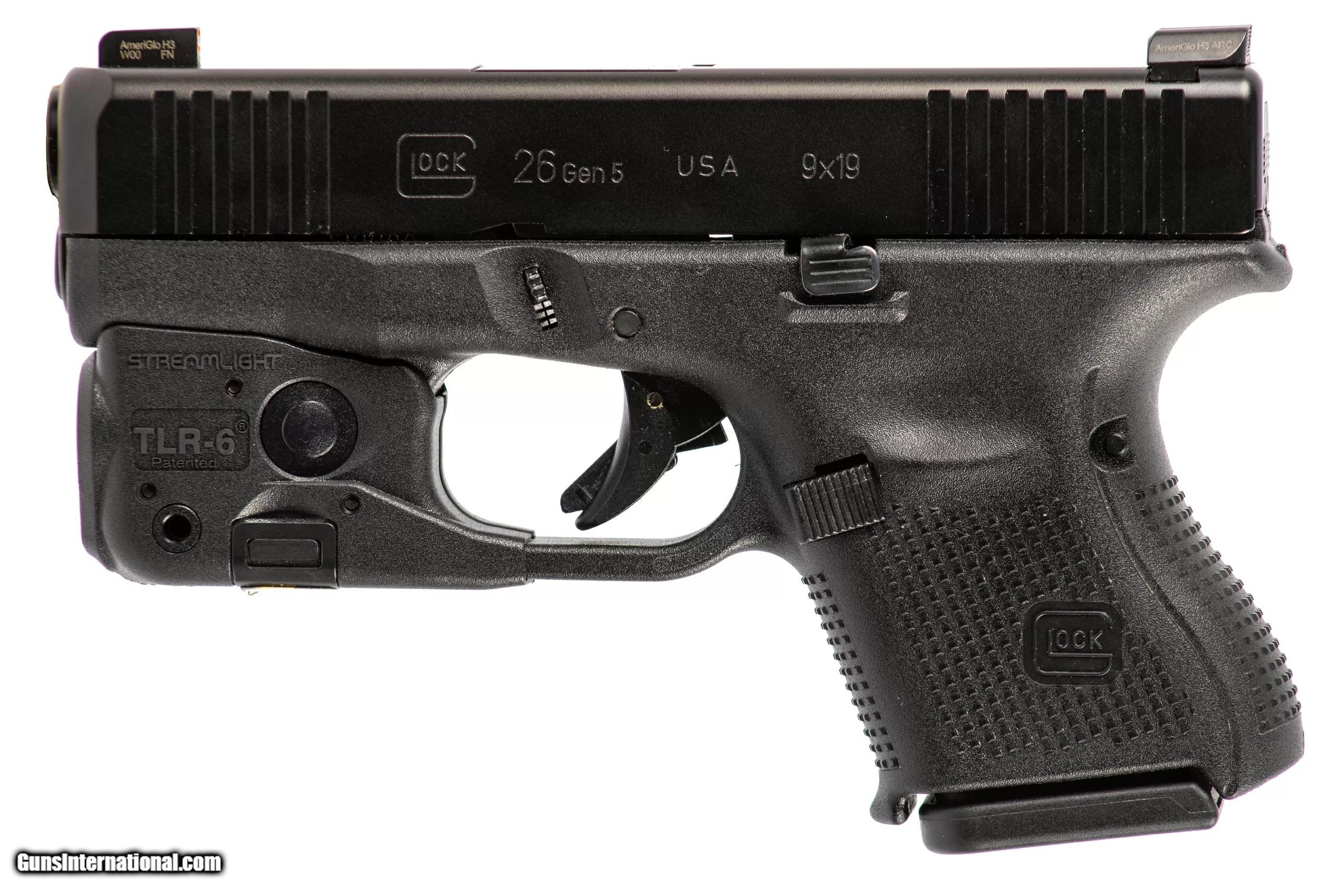 Description: Glock Model 26 Generation 5 Made in America chambered in 9 Millimeter Parabellum with a 3½ inch barrel, mirror-shine bore with immaculate rifling. This pistol comes with a case, 1 extra mag, and is equipped with a Streamlight TLR-6 and AmeriGlo H3 night sights. The NRA grading condition for this USED firearm is Excellent. Dury's Lifetime Warranty: All firearms purchased from Dury’s Gun Shop, NEW or USED, are covered by a lifetime warranty. We will repair or replace, at our discretion, any firearm purchased from Dury’s Gun Shop, Inc. for as long as it is owned by the purchaser. This warranty is not transferable. WE BUY GUNS! NO COLLECTION TOO BIG OR SMALL FOR OUR GUNS INTERNATIONAL CUSTOMERS ALL OF OUR FIREARMS CAN BE PURCHASED DIRECTLY FROM OUR DURY'S GUNS SITE ! SOLD Manufacturer: Glock Model: 26 Gen 5 Caliber Info: 9 mm Barrels: 3inches |