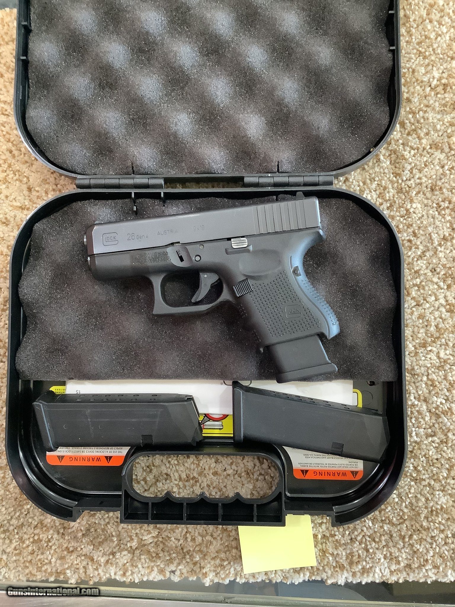 Description: Guns Listing ID: 545679 Very good condition comes with factory case and papers along with 2 extra mags SOLD Manufacturer: GLOCK Model: 26 GEN4 Caliber Info: 9MM LUGER (9x19 PARA) Condition: Used - Non-Certified Barrels: 3.5 BARREL Action: SEMI AUTOMATIC Finish: black |