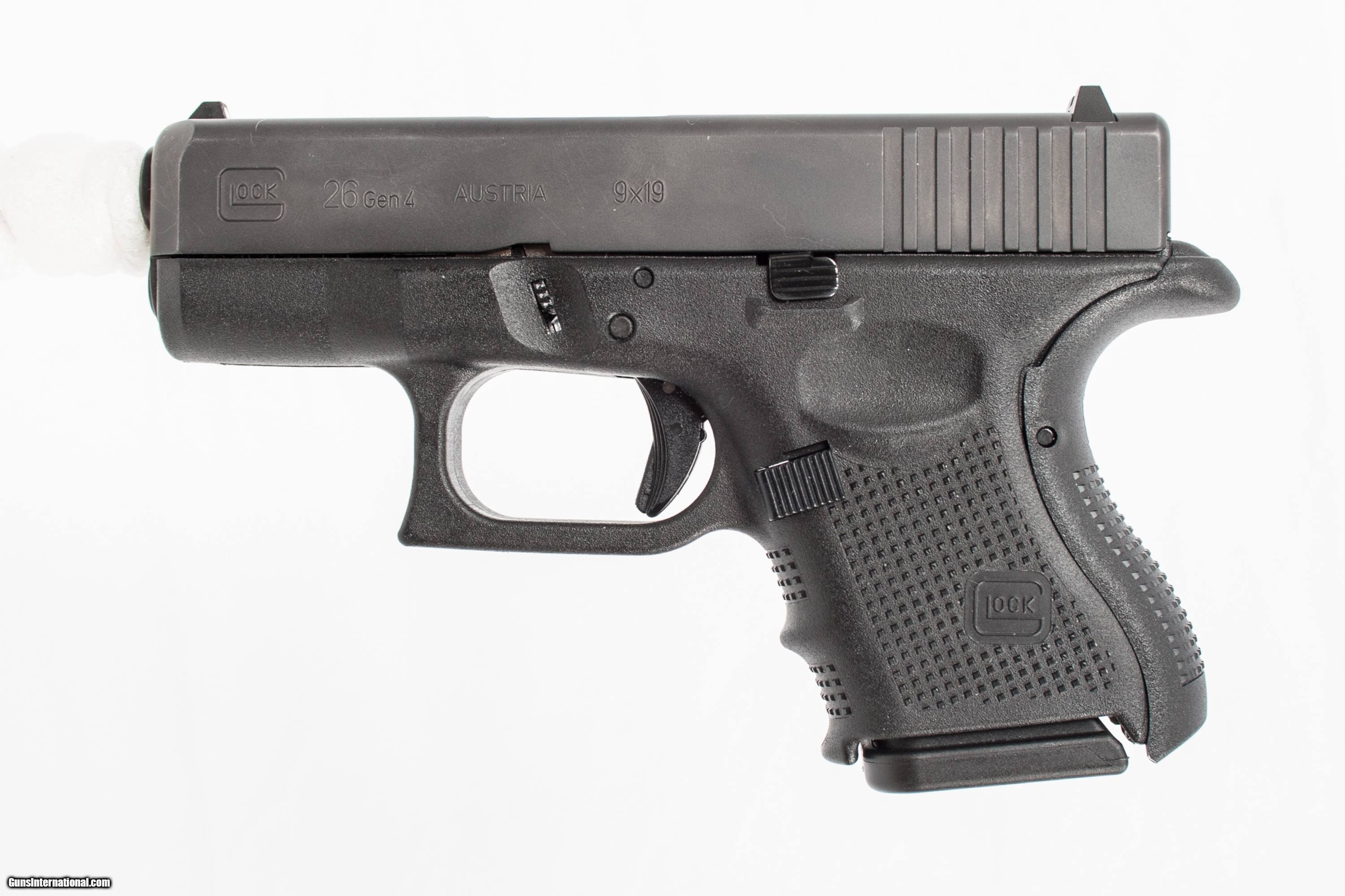 GLOCK 26 GEN4 CHAMBERED IN 9MM WITH A 3.5 INCH BARREL COMES WITH CASE AND 3 EXTRA MAGS. THIS GUN IS IN EXCELLENT CONDITION AND IS COVERED BY DURY'S LIFETIME WARRANTY.