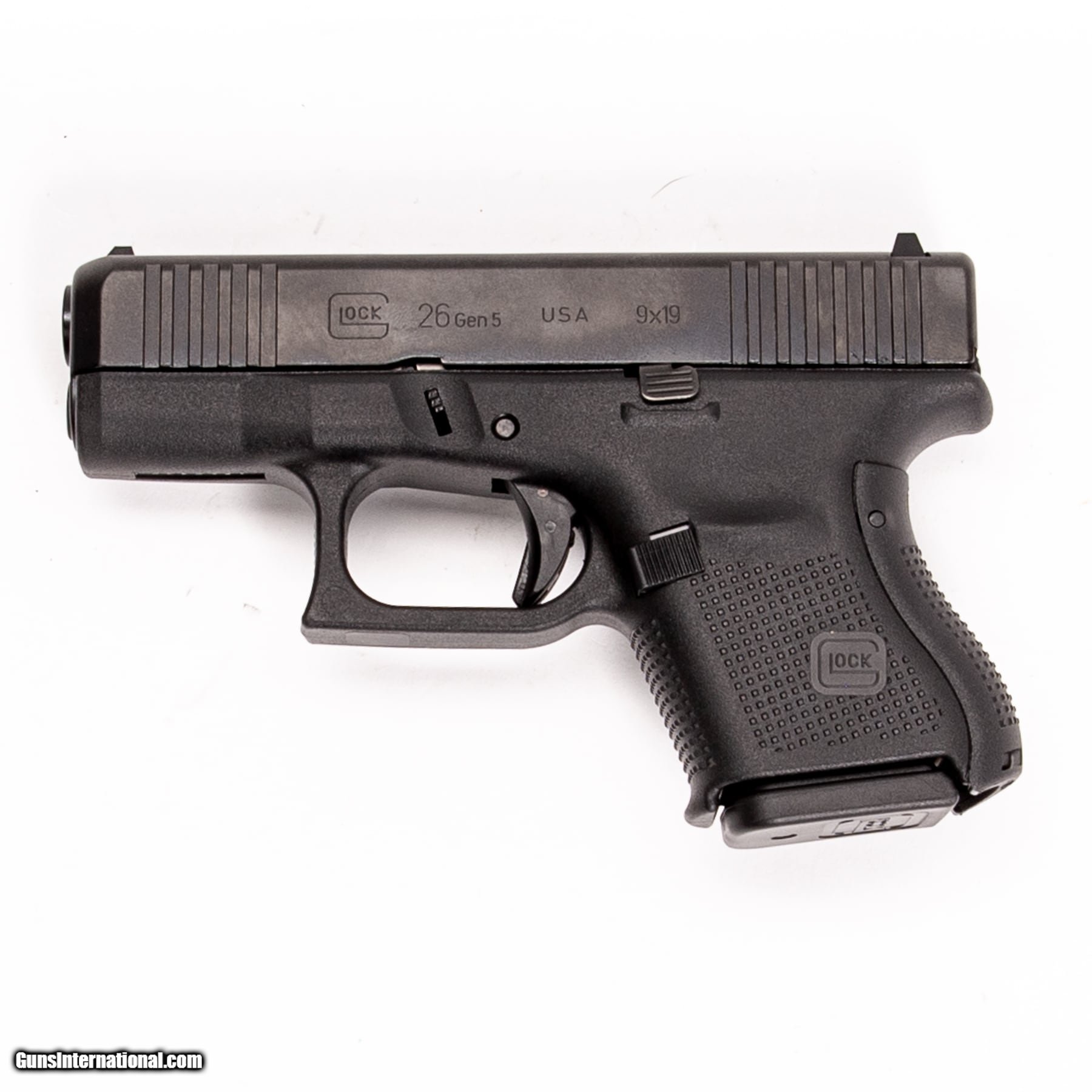 Description: Guns Listing ID: 316164 Also known as the \"Baby Glock,\" this Glock G26 Gen 5 is a sub-compact, semi-automatic handgun chambered in 9mm. Highly accurate and dependable, it has remained one of the most popular carry options since its initial introduction. In addition to offering Glock‚‚s signature polymer frame, this pistol sports a Marksman Barrel with polygonal rifling for increased accuracy and improved barrel crown. Other features include a stippled grip, flared magwell, and ambidextrous slide stop levers. This Glock 26 is in very good condition. It comes with the original case, manual, three 10-round magazines (one with a Pearce XL grip), grip panels, and an easy loader SOLD Manufacturer: GLOCK Model: 26 GEN5 Caliber Info: 9MM LUGER Condition: Used - Certified Barrels: 34 BARREL Finish: BLACK |