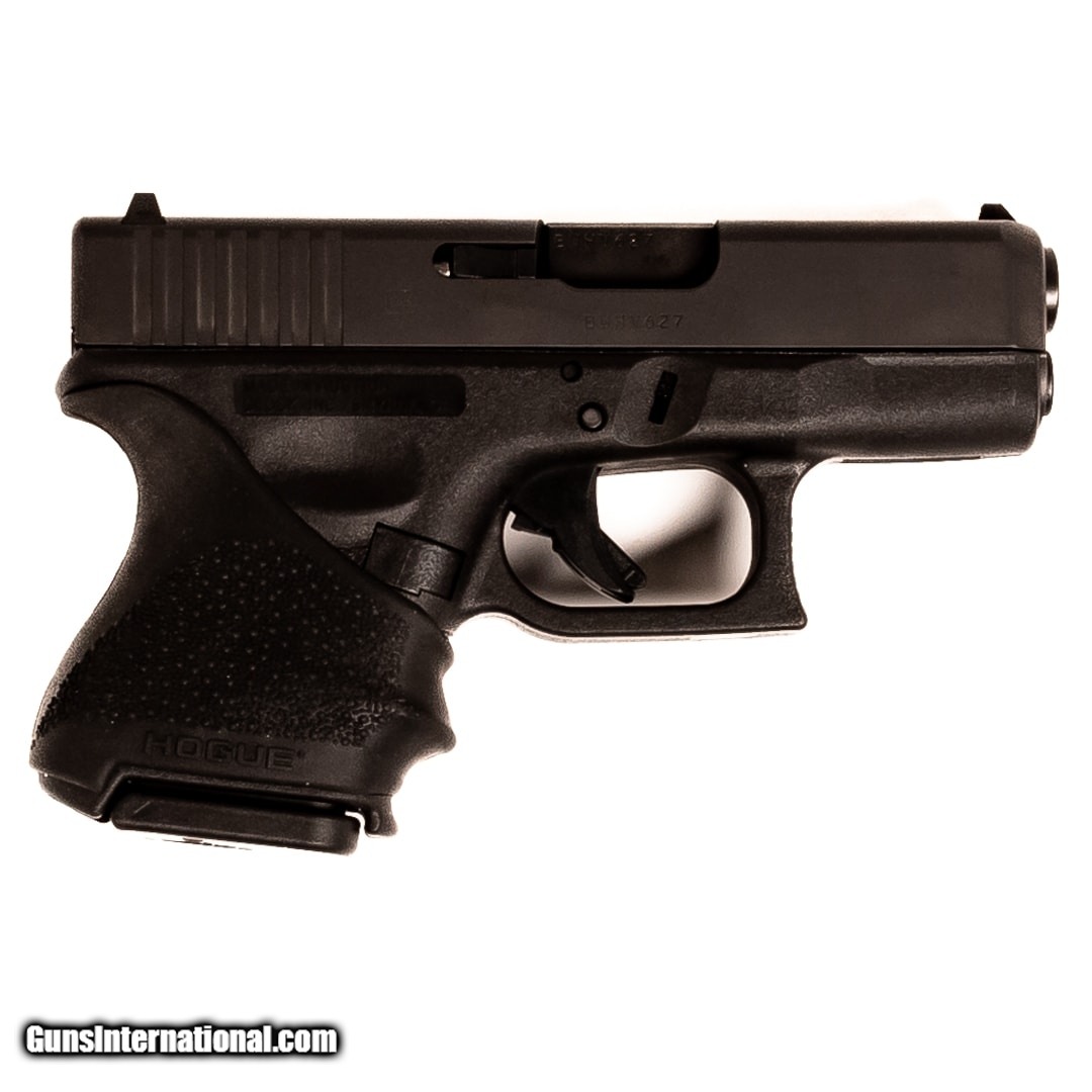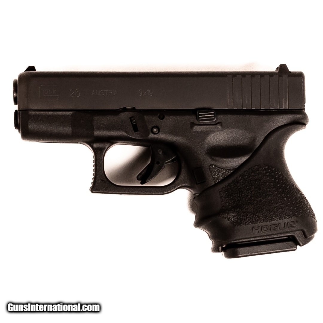 Description: Guns Listing ID: 735292 Known as the \"Baby Glock,\" the Glock 26 is a semi-automatic pistol that‚‚s well-equipped for self-defense and makes a great concealed carry weapon. This G26 Gen 3 has a Hogue grip wrap and includes two 10-round magazines. Get the best bang for your buck when you get a Certified Used Firearm . When you see the Certified Used stamp on any of our firearms, you can be confident that you’re getting exactly what you want – a gun only in very good to excellent condition and held to the highest quality standard. All Certified Used Guns come with a ‘no questions asked’ return policy . PLUS, ALL CERTIFIED USED GUNS SHIP FREE SOLD Manufacturer: GLOCK Model: 26 Caliber Info: 9MM LUGER (9X19 PARA) Condition: Used - Certified Barrels: 3.25 barrel Finish: BLACK |