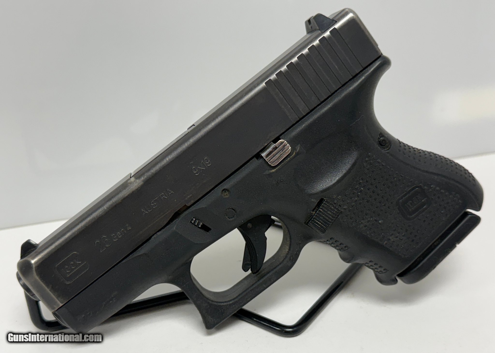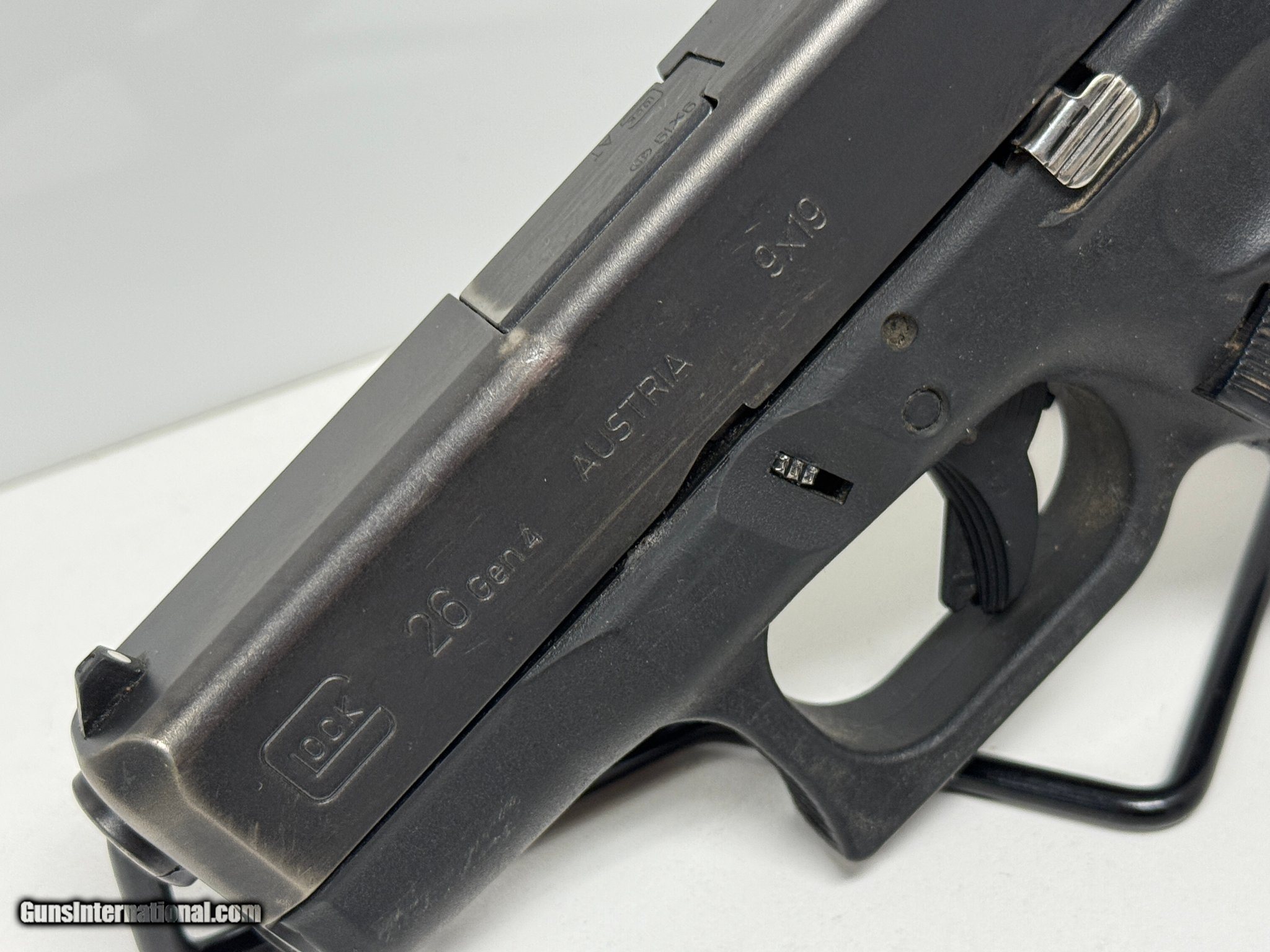 Description: Guns Listing ID: 492778 Glock 26 Gen 4 9mm Luger 3.43\" Black with Magazine Semi Auto Pistol Great used condition. See photos for details. Included: pistol and 1 magazine ONLY SOLD Manufacturer: GLOCK Model: G26 GEN 4 Caliber Info: 9MM LUGER (9x19 PARA) Condition: Used - Non-Certified Barrels: 3.4 Finish: black |