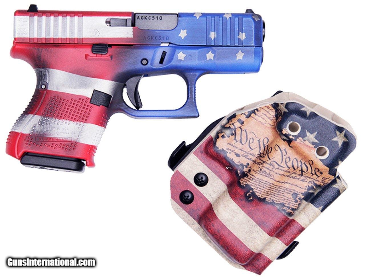 Description: Guns Listing ID: 1341378 G26 Gen 5, 9mm, 3.5\" Barrel, FS, Serrated, Constitutional Carry, Holster, 3 10-rd Mags American Flag SOLD Manufacturer: GLOCK Model: G26 GEN 5 Caliber Info: 9MM LUGER (9X19 PARA) Condition: new Barrels: 3.5 BARREL Finish: AMERICAN FLAG |