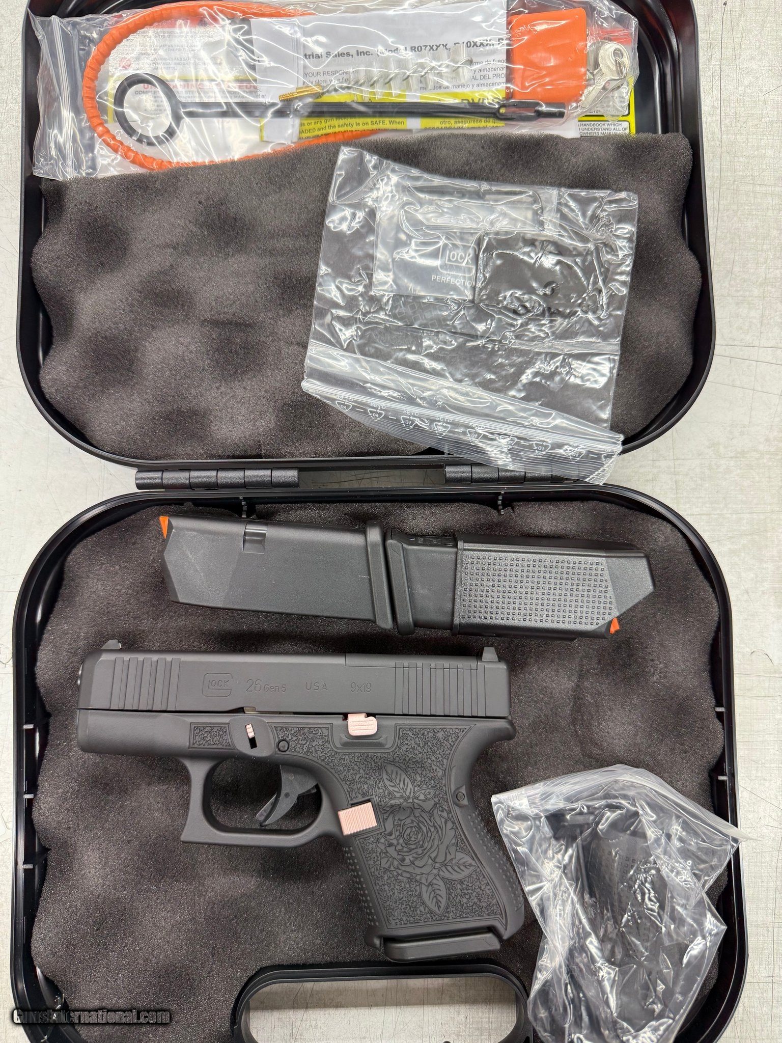 Description: Guns Listing ID: 491780 New in box Glock 26 Gen 5 MOS Rose. This is a brand new gun with 3 mags and custom rose gold accents and roses laser engraved on the frame SOLD Manufacturer: GLOCK Model: G26 GEN 5 Caliber Info: 9MM LUGER (9X19 PARA) Condition: Used - Non-Certified Barrels: 3.43 BARREL Action: STRIKER FIRED Finish: BLACK |