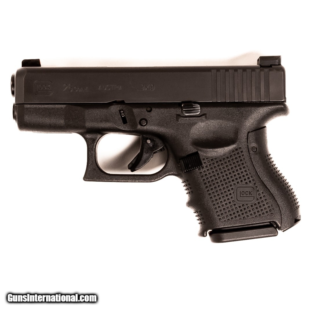 Description: Guns Listing ID: 657880 Also known as the \"Baby Glock,\" the Glock 26 is one of America‚‚s most popular concealed carry options. This sub-compact pistol is built on the company‚‚s signature lightweight polymer frame with rough texture technology for added durability. The Gen 4 model sports an aggressively textured grip and finger grooves to ensure a secure grasp through every shot. This G26 Gen 4 is equipped with Trijicon Hi-Viz night sights and includes the original case, manual, three 10-round magazines, and backstraps. Get the best bang for your buck when you get a Certified Used Firearm . When you see the Certified Used stamp on any of our firearms, you can be confident that you’re getting exactly what you want – a gun only in very good to excellent condition and held to the highest quality standard. All Certified Used Guns come with a ‘no questions asked’ return policy . PLUS, ALL CERTIFIED USED GUNS SHIP FRE SOLD Manufacturer: GLOCK Model: G26 GEN4 Caliber Info: 9MM LUGER (9X19 PARA) Condition: Used - Certified Barrels: 3.4 barrel Finish: BLACK |
