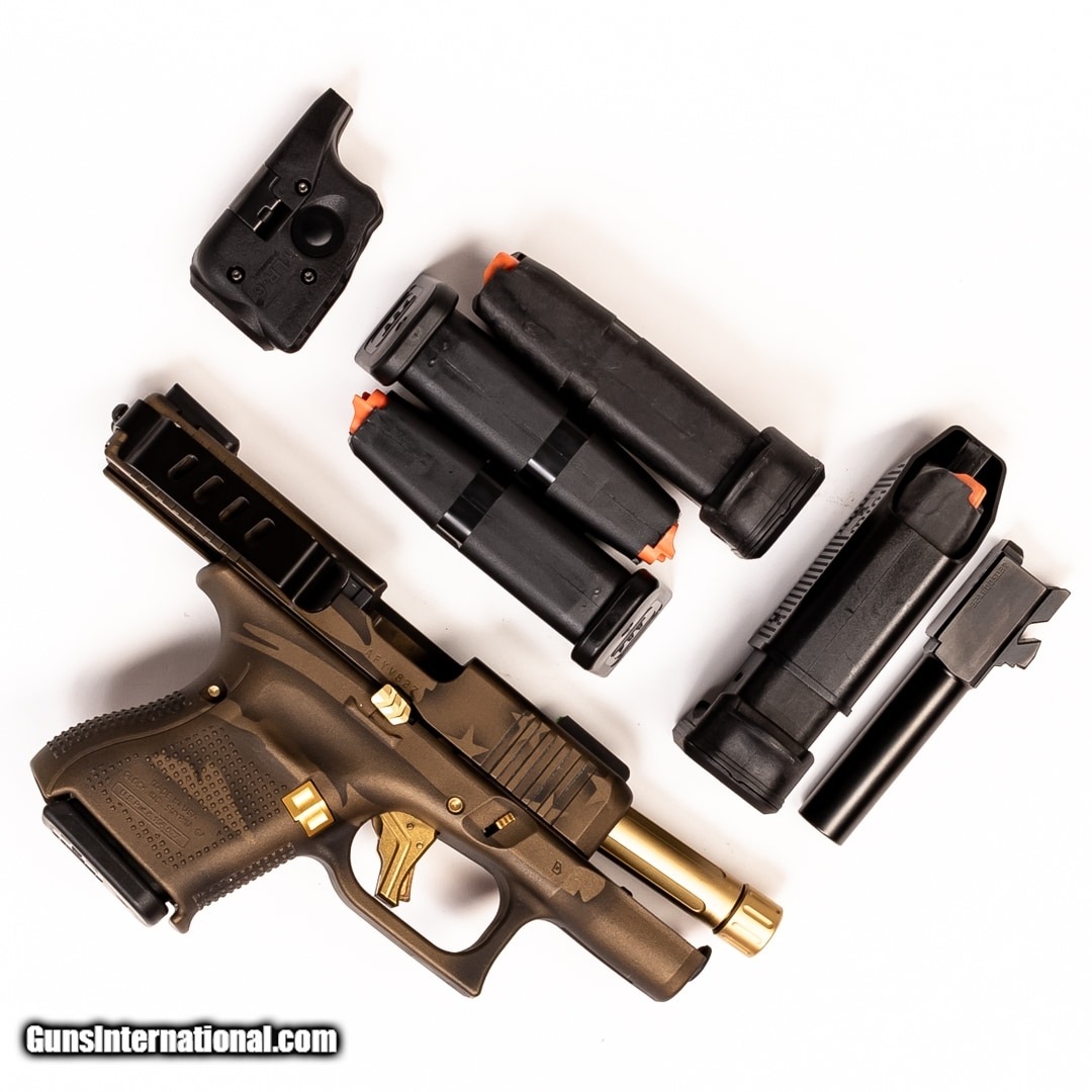 Description: Guns Listing ID: 482940 The Glock 26 Gen 5 is the latest generation of the Glock 26. They are popular among citizens for concealed carry and in the law enforcement community as a last resort backup weapon. 2-12 round Magpul magazines, 3-10 round magazines, the original carry case, original accessories, gold Tyrant Designs components, Truglo tritium night sights, a slide carry clip, and a Streamlight TLR6 laser/light combo are included/installed. SOLD Manufacturer: GLOCK Model: G26 GEN5 Caliber Info: 9MM LUGER Condition: Used - Certified Barrels: 4 BARREL Finish: CUSTOM |