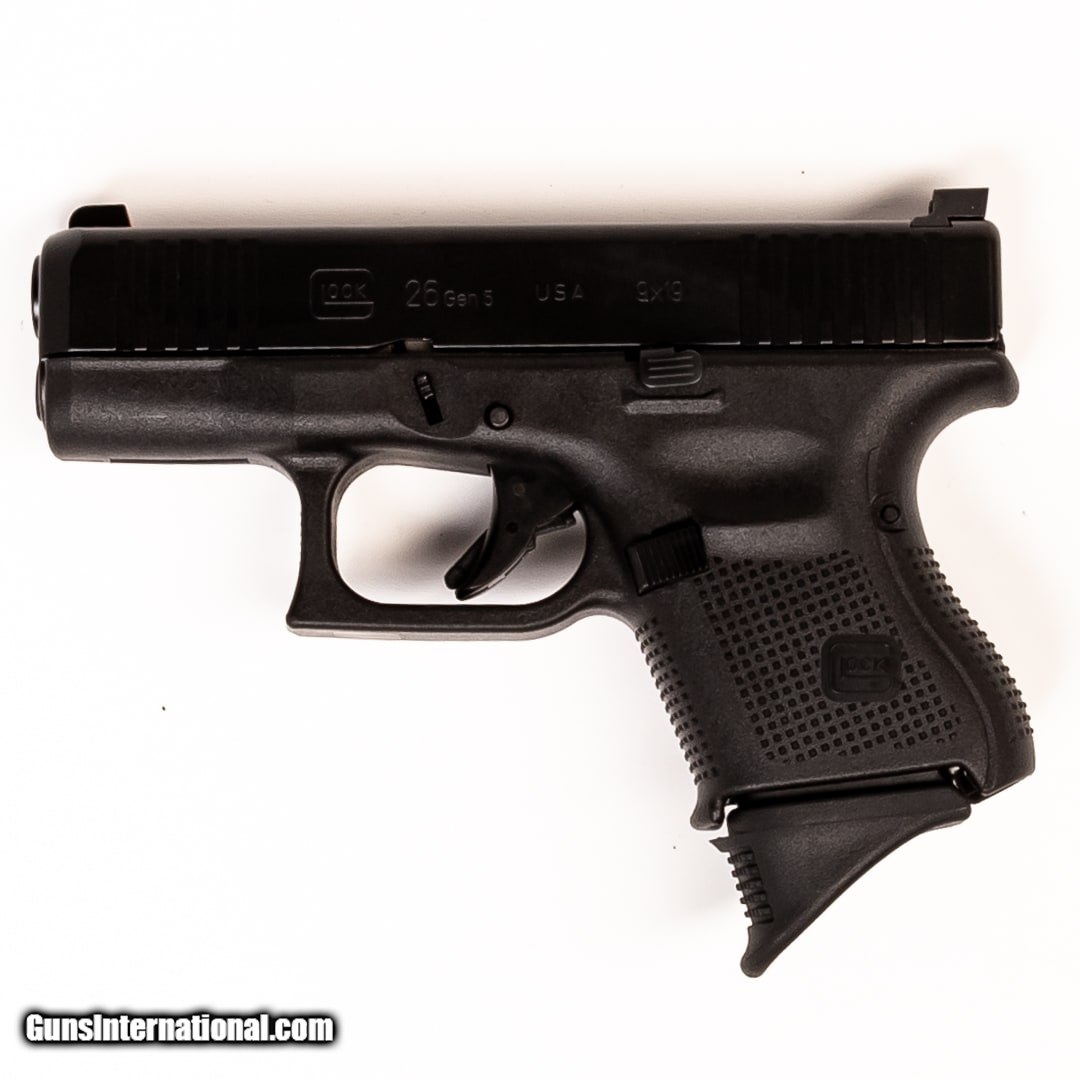 Description: Guns Listing ID: 521742 Also known as the \"Baby Glock,\" the Glock 26 is a sub-compact, semi-automatic handgun chambered in 9mm. Highly accurate and dependable, it has remained one of the most popular carry options since its initial introduction. In addition to offering Glock‚‚s signature polymer frame, features include a stippled grip, flared magwell, and ambidextrous slide stop levers. This G26 Gen 5 is equipped with Trijicon H3 DN sights and includes the original case, manual, three 10-round extended grip magazines, three 12-round extended magazines, a speedloader, and spare grips SOLD Manufacturer: GLOCK Model: G26 GEN5 Caliber Info: 9MM LUGER Condition: Used - Certified Barrels: 34 BARREL Finish: BLACK |