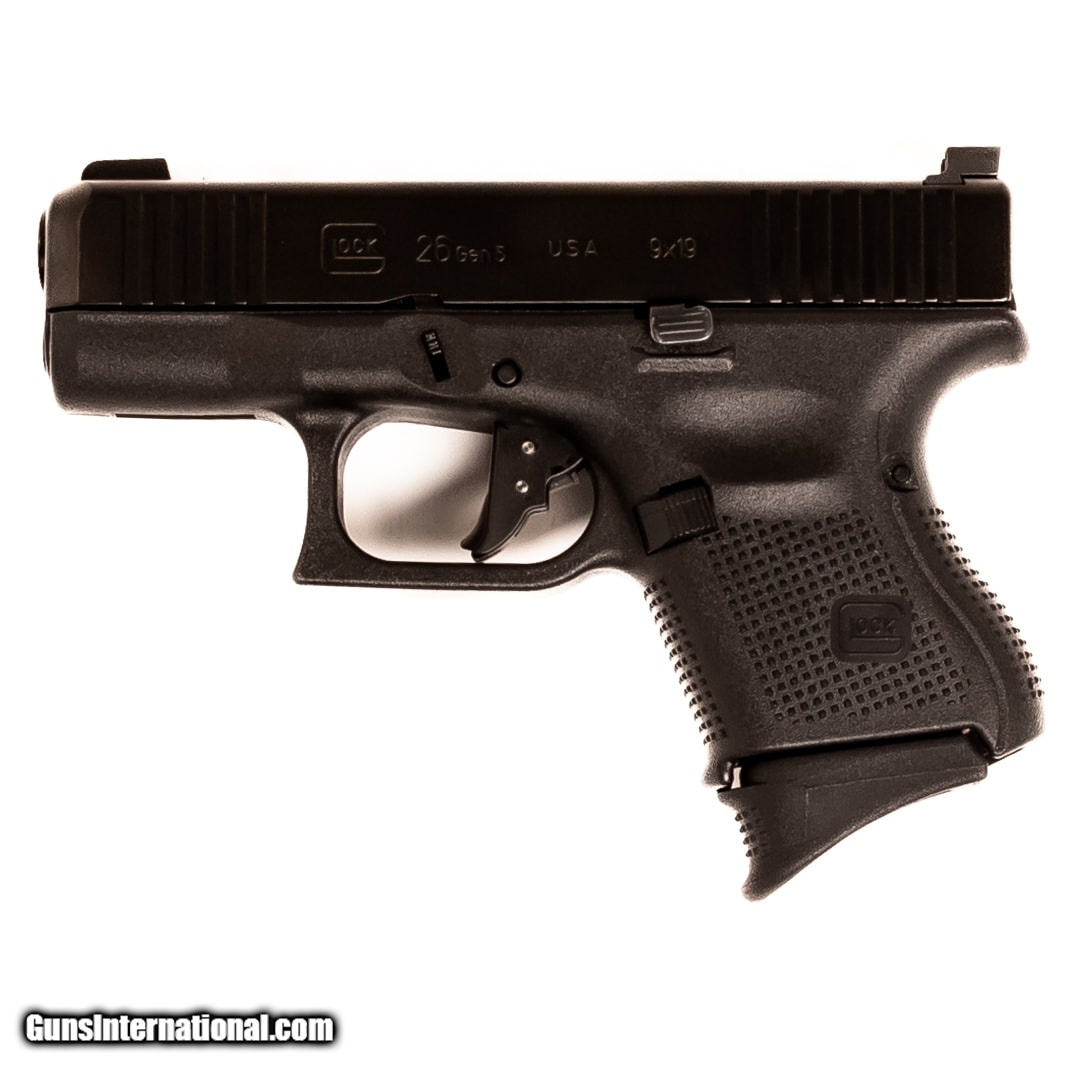 Description: Guns Listing ID: 675263 Also known as the \"Baby Glock,\" the Glock 26 is a sub-compact, semi-automatic handgun that‚‚s highly accurate and dependable. It has remained one of the most popular carry options since its initial introduction. In addition to offering Glock‚‚s signature polymer frame, features include a stippled grip, flared magwell, and ambidextrous slide stop levers. This G26 Gen 5 is equipped with a Vickers trigger and Trijicon XD night sights. Purchase includes the original case, manual, and three 10-round magazines. Get the best bang for your buck when you get a Certified Used Firearm . When you see the Certified Used stamp on any of our firearms, you can be confident that you’re getting exactly what you want – a gun only in very good to excellent condition and held to the highest quality standard. All Certified Used Guns come with a ‘no questions asked’ return policy . PLUS, ALL CERTIFIED USED GUNS SHIP FRE SOLD Manufacturer: GLOCK Model: G26 GEN5 Caliber Info: 9MM LUGER (9X19 PARA) Condition: Used - Certified Barrels: 3.4 barrel Finish: BLACK |