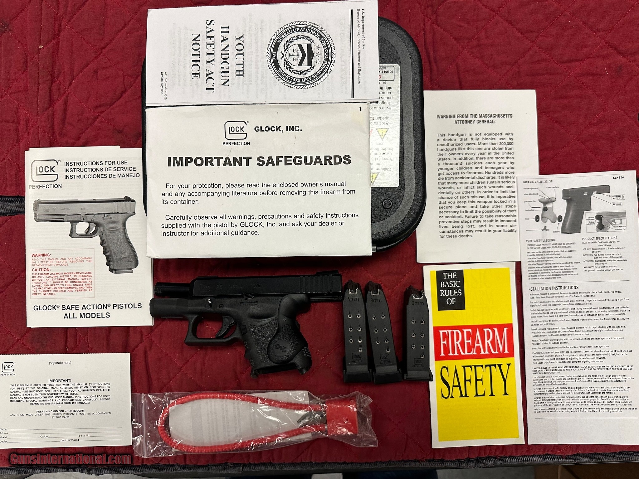 Description: Guns Listing ID: 885569 THIS GLCOK IS IN BVERY GOOD CONDITION INCLUDING NIGHT SIGHTS AND LASER GRIP. SOLD Manufacturer: GLOCK Model: G26 W/LASER GRIP Caliber Info: 9MM LUGER (9X19 PARA) Condition: Used - Non-Certified Barrels: 3 BARREL Finish: MATTE |
