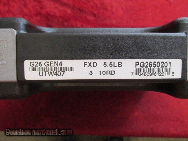 Description: Glock Model 26 Gen4 9 mm semi-auto Sub-Compact pistol 3.4" 10-rd LNIB #PG2650201 Like New in Box--Excellent Condition This is a used Glock 26 Gen 4. The GLOCK 26 Gen4 in 9 mm Luger is one of the most sought-after concealed carry pistols. The magazine capacity of 10 rounds is standard and the highly accurate firing characteristics explain why the G26 Gen4 is the mainstay backup option among security personnel and agencies worldwide. Of course, the G26 Gen4 comes with a reversible magazine catch, interchangeable back straps and improved frame texturing for solid control despite the pistol's size. Includes one 10-round magazines, interchangeable backstraps, and mag loader in the original box with all paperwork. Please see pictures.